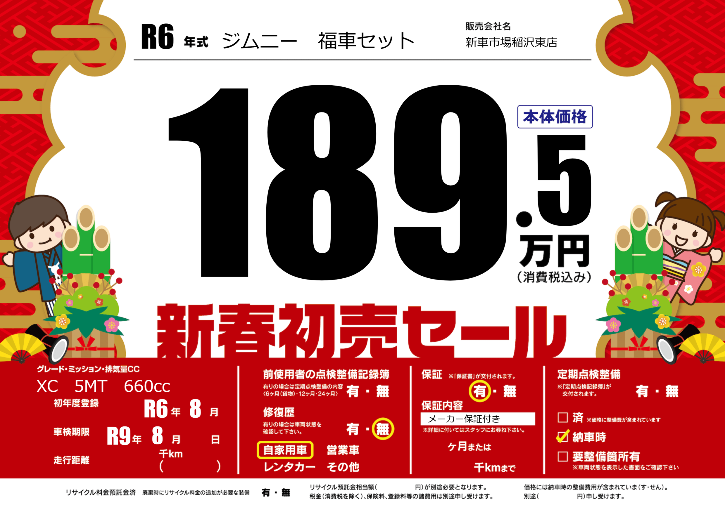| 車名 | ジムニー 福車セット | グレード ミッション 排気量 |