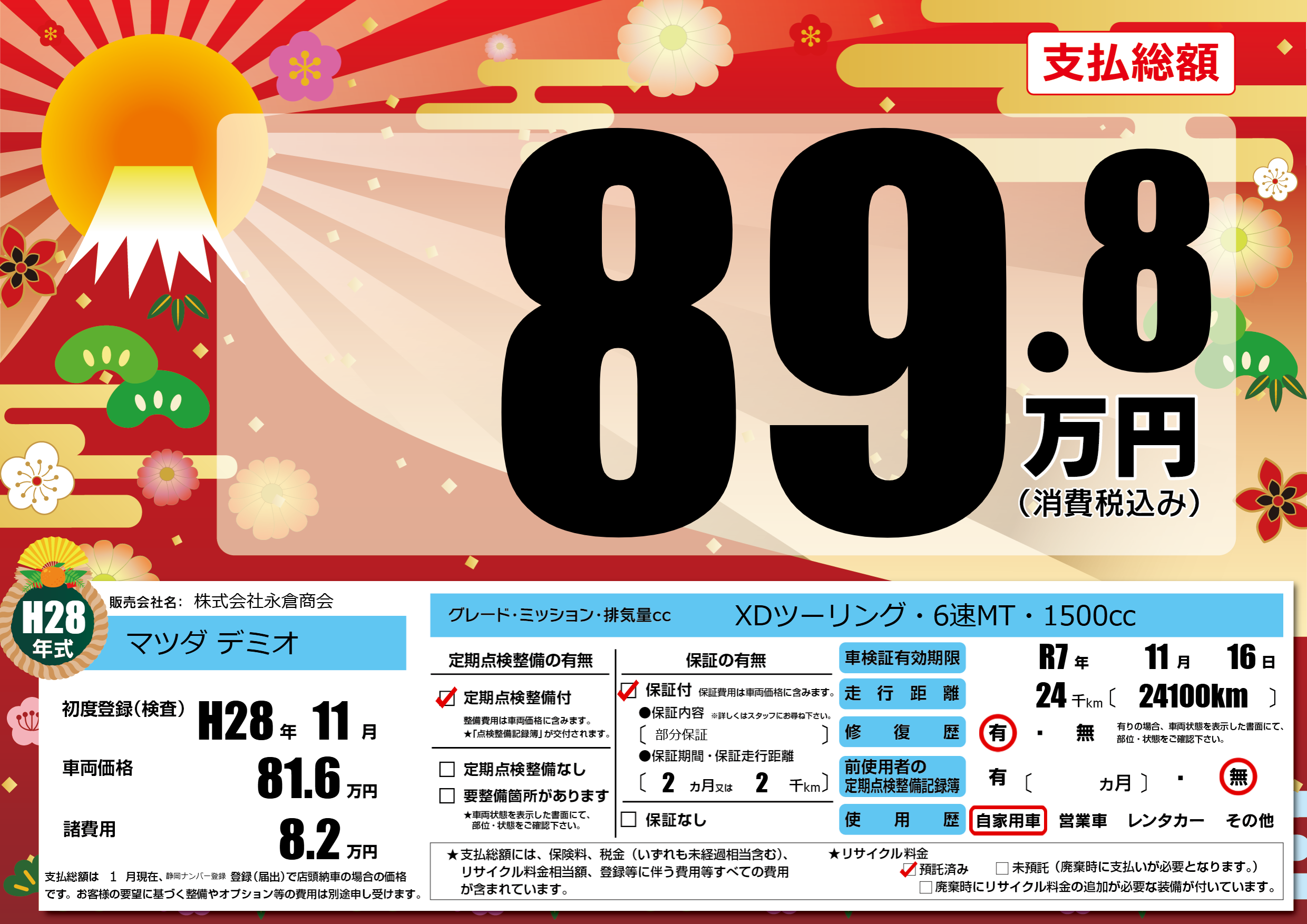 なし | 車検制限 | R7年11月16月 |
