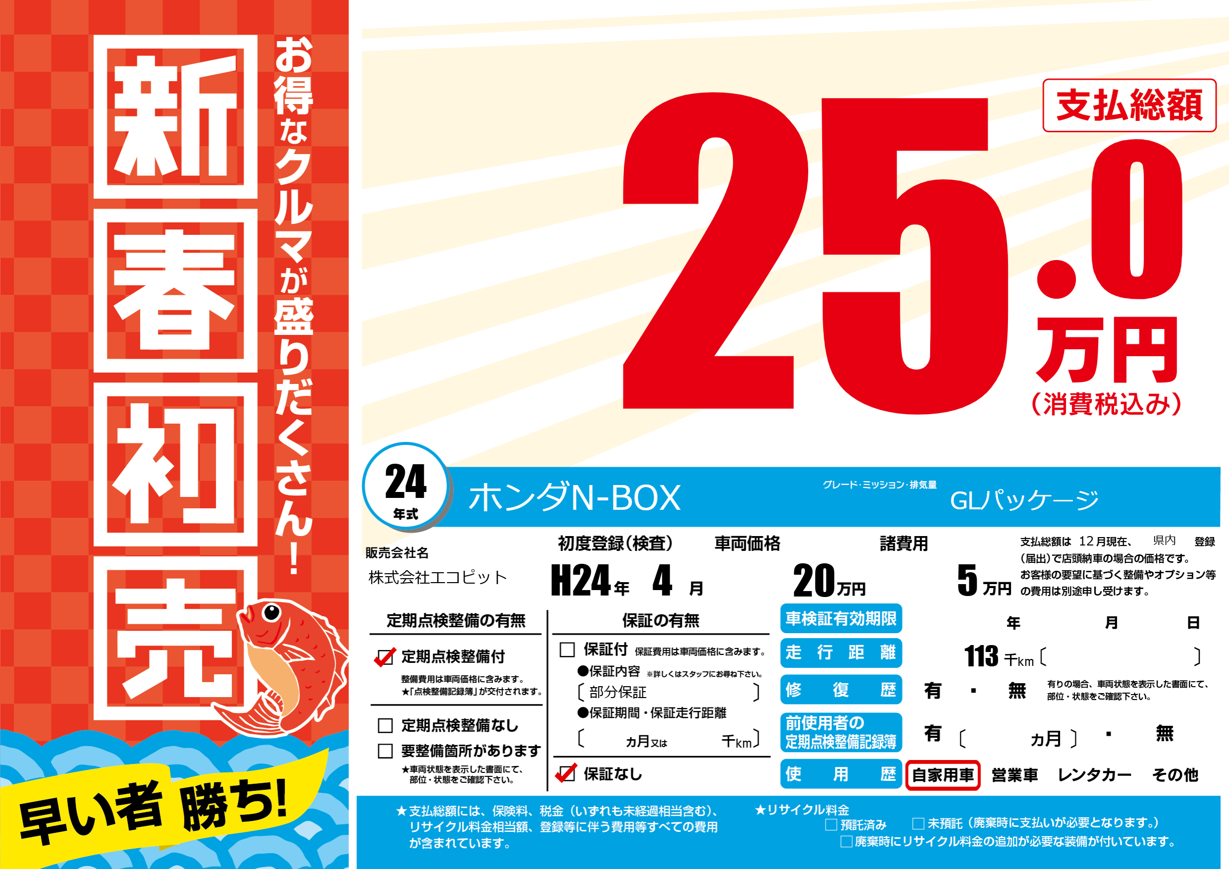 | 走行キロ | 11.3万km | 初年度登録 | H24年4月 |