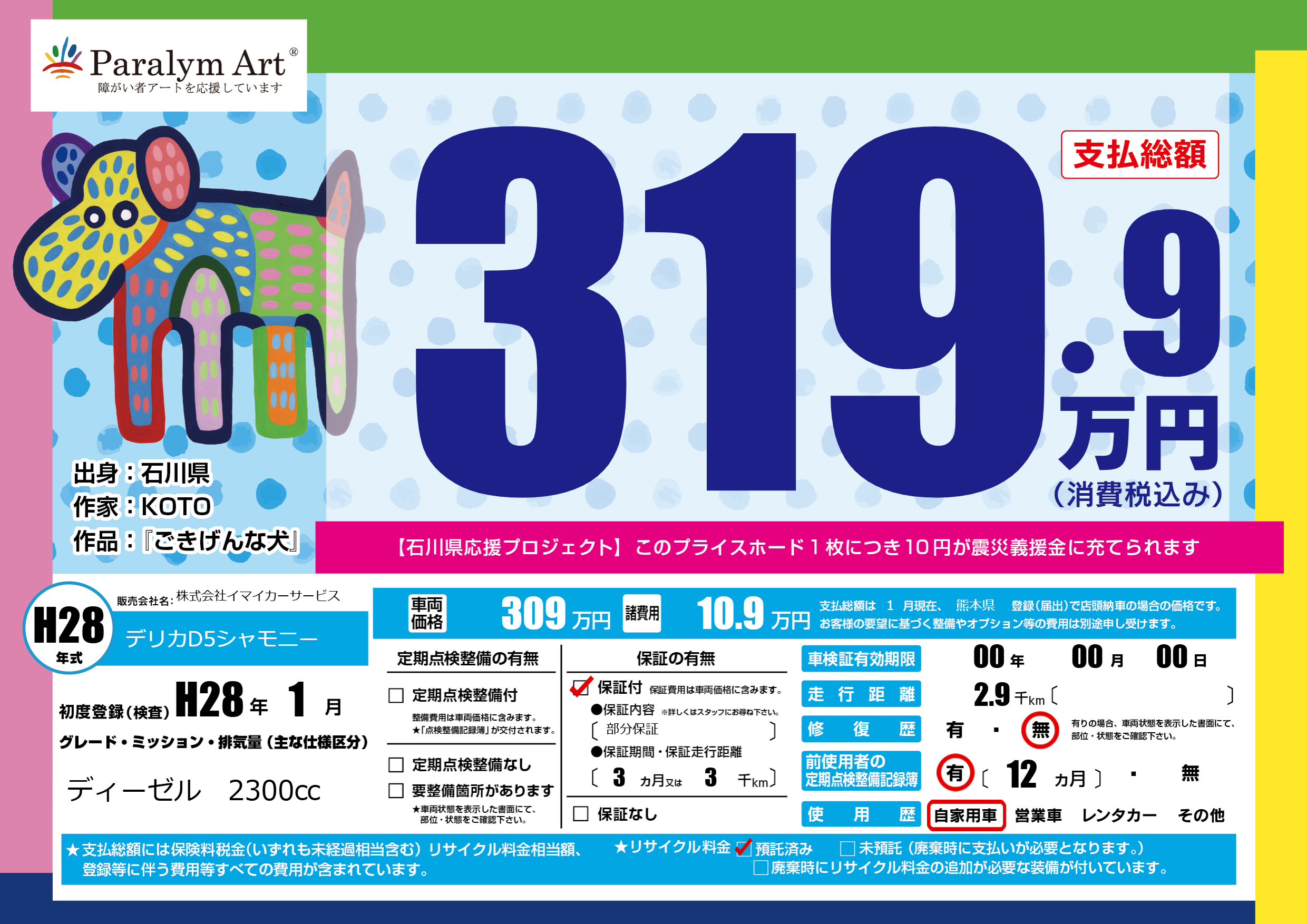 | 走行キロ | 0.2万km | 初年度登録 | H28年1月 |