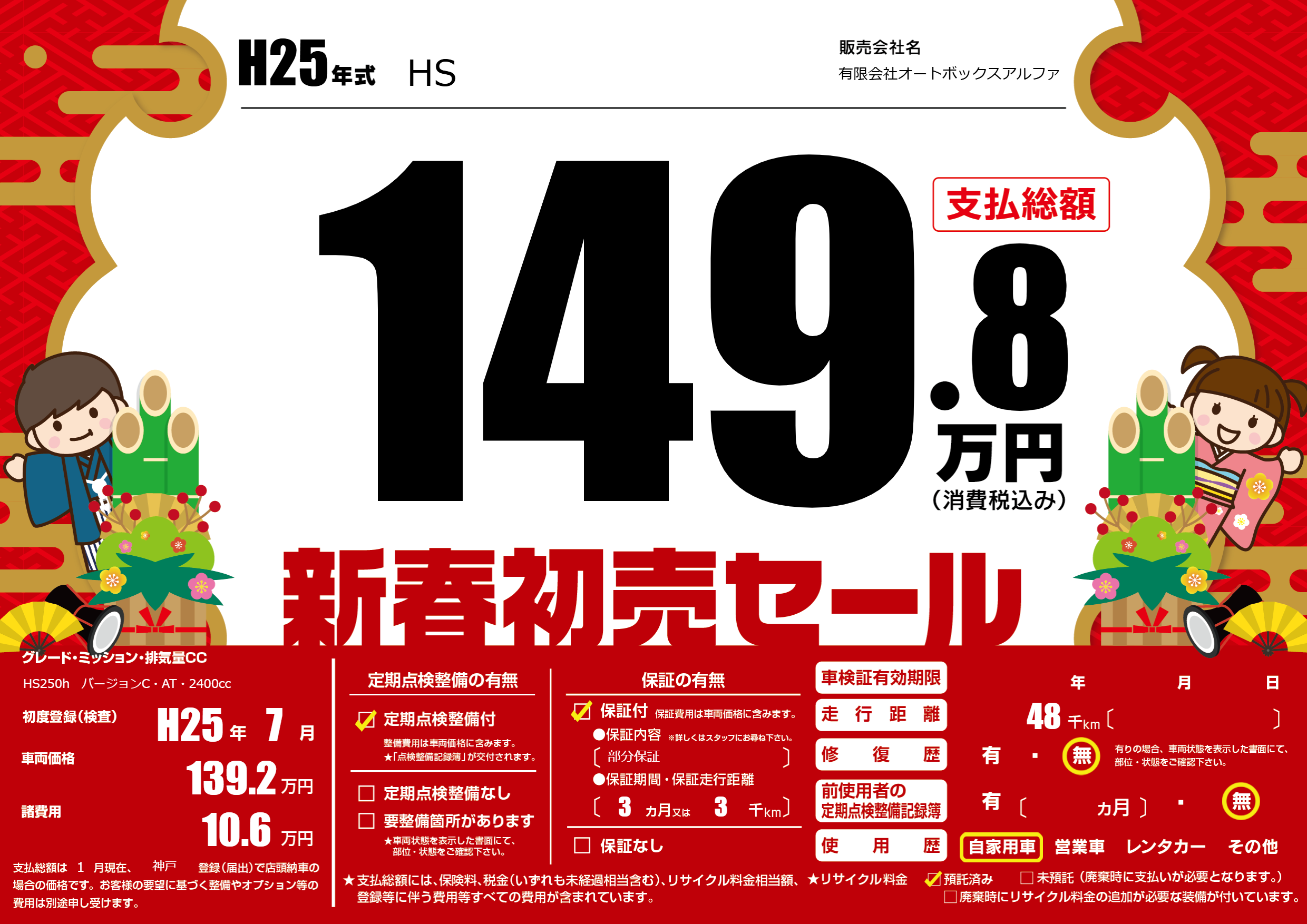 | 走行キロ | 4.8万km | 初年度登録 | H25年7月 |