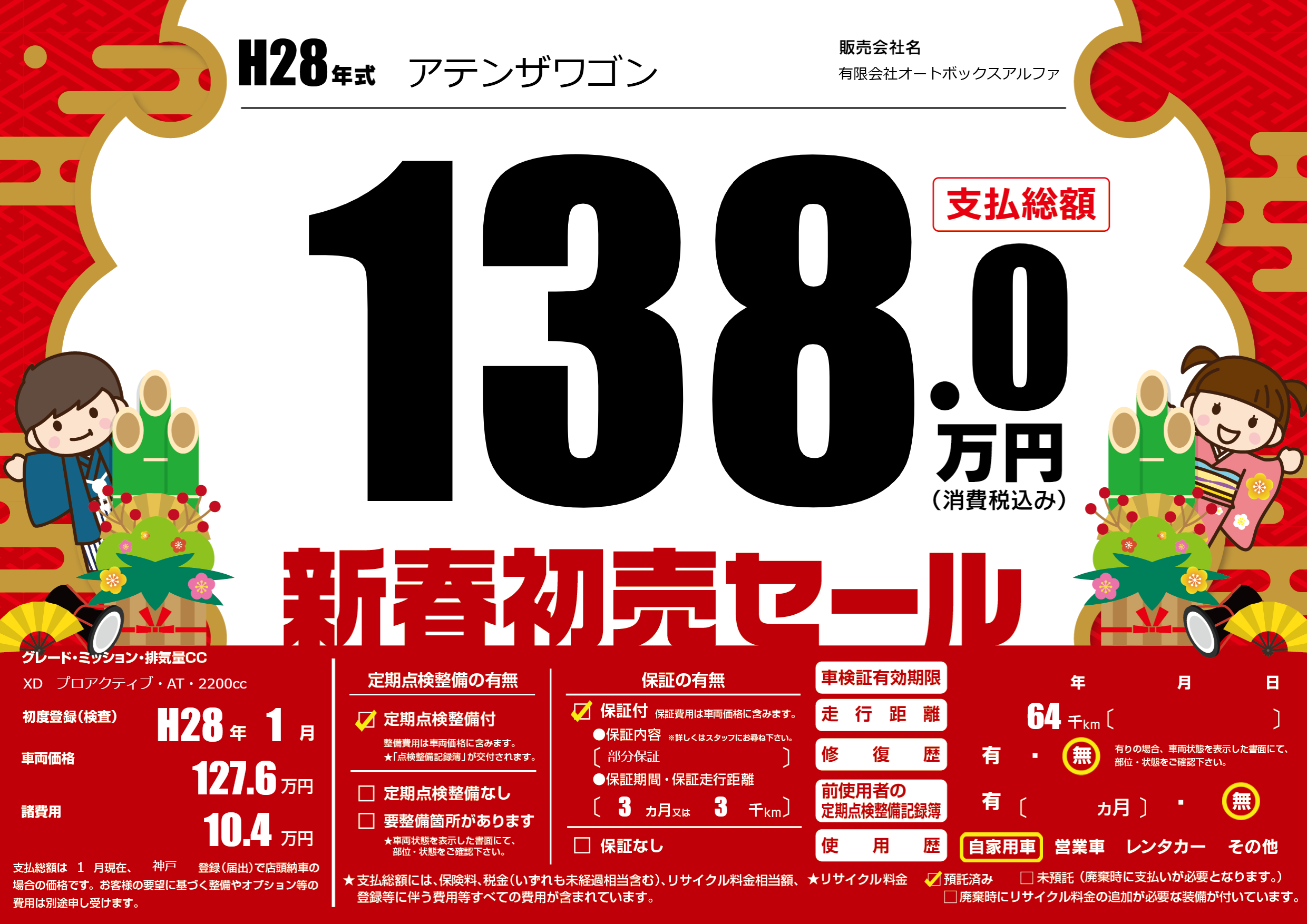 | 初年度登録 | H28年1月 | ||