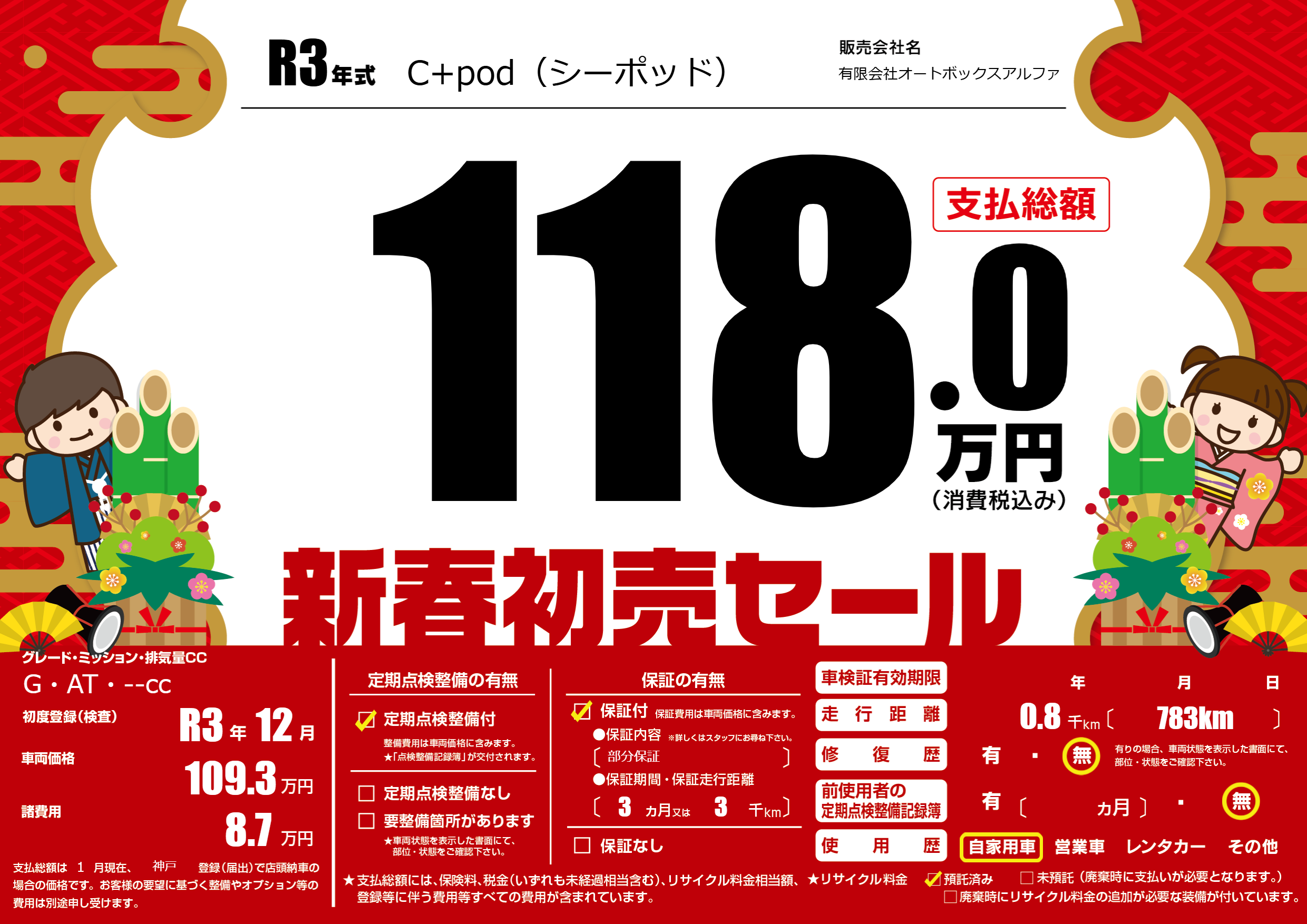 保証付き 保証内容(部分保証) 3ヶ月または(3)千kmまで |