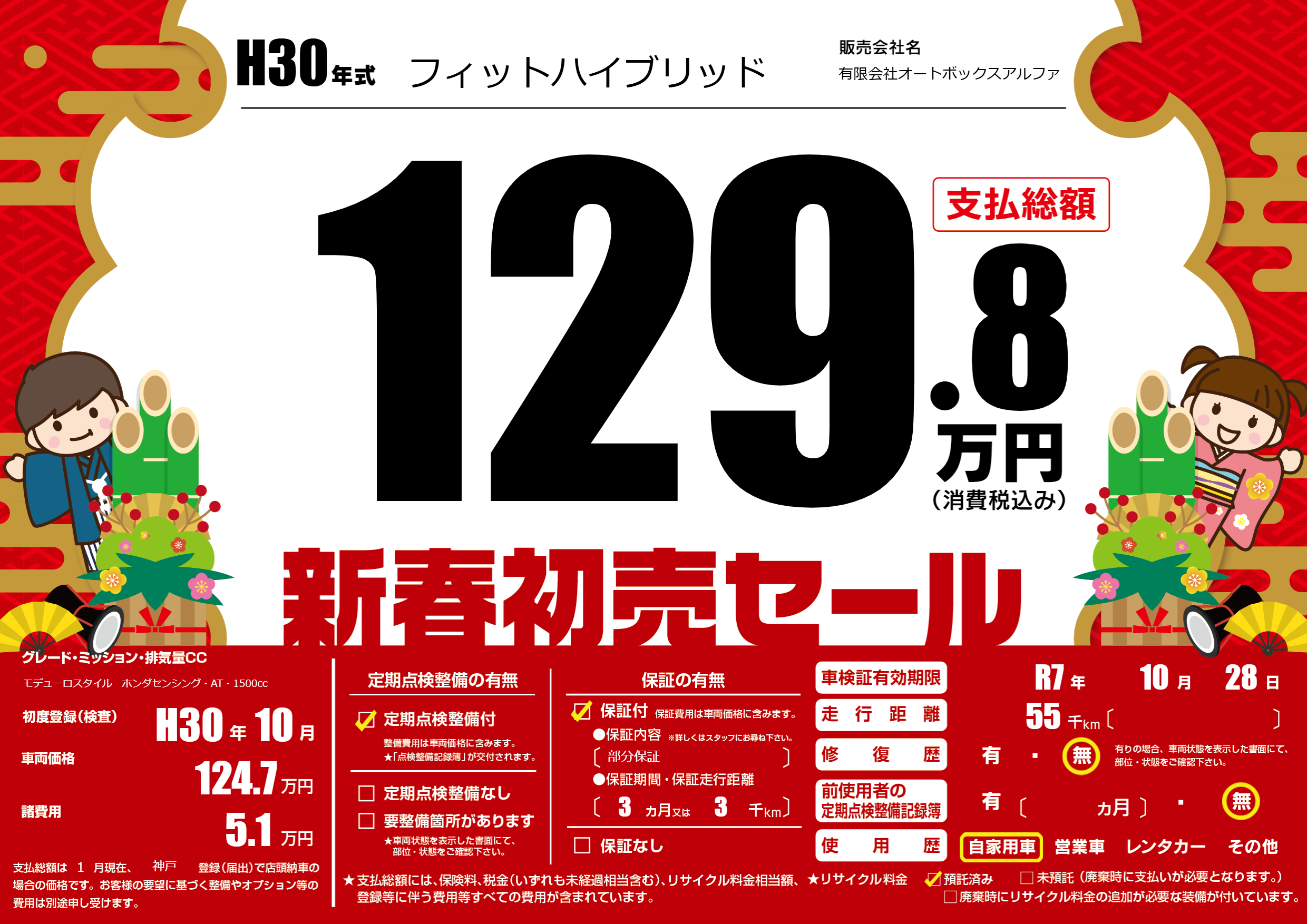 保証付き 保証内容(部分保証) 3ヶ月または(3)千kmまで |