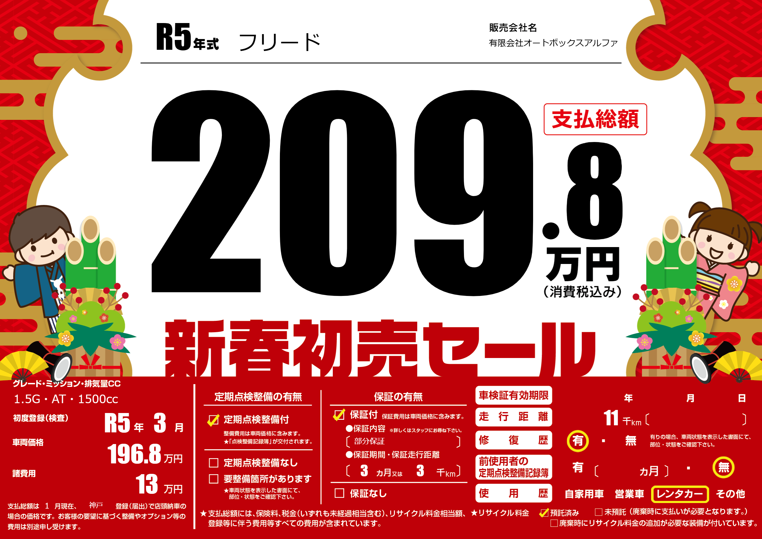保証付き 保証内容(部分保証) 3ヶ月または(3)千kmまで |