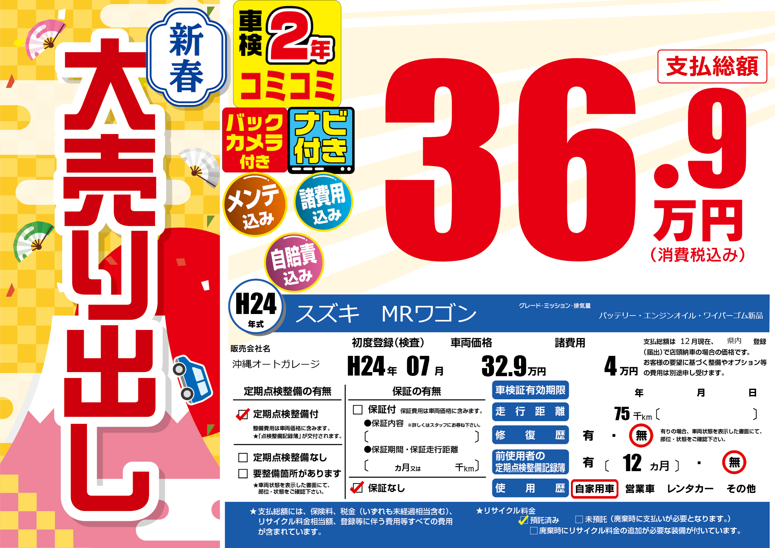 | 車名 | スズキ MRワゴン | グレード ミッション 排気量 |