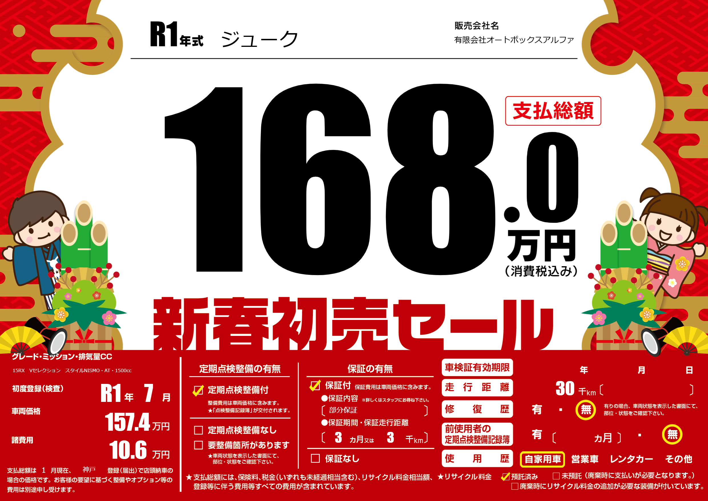 | 車名 | ジューク | グレード ミッション 排気量 |