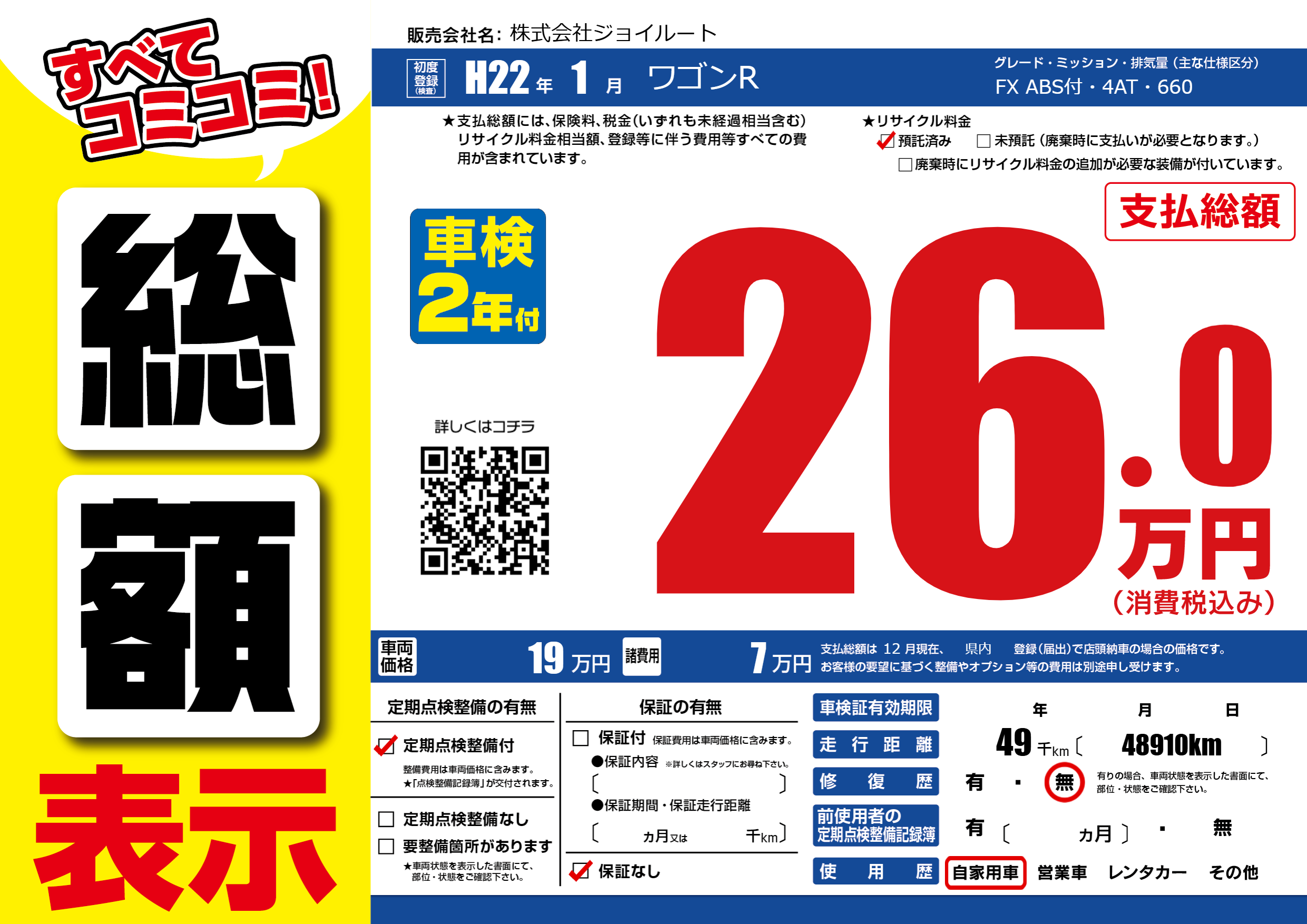 | 車名 | ワゴンR | グレード ミッション 排気量 |