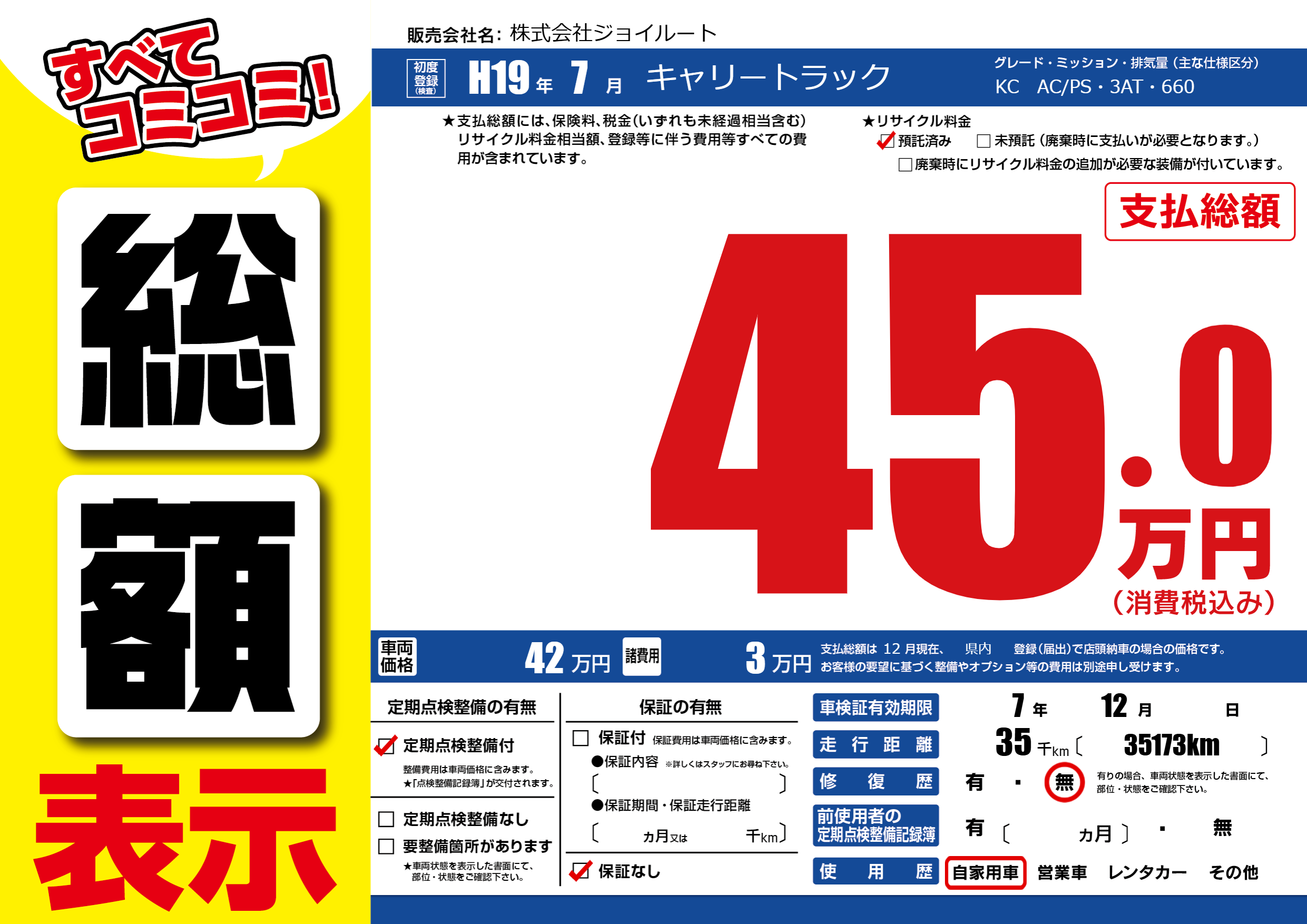 | 車名 | キャリートラック | グレード ミッション 排気量 |
