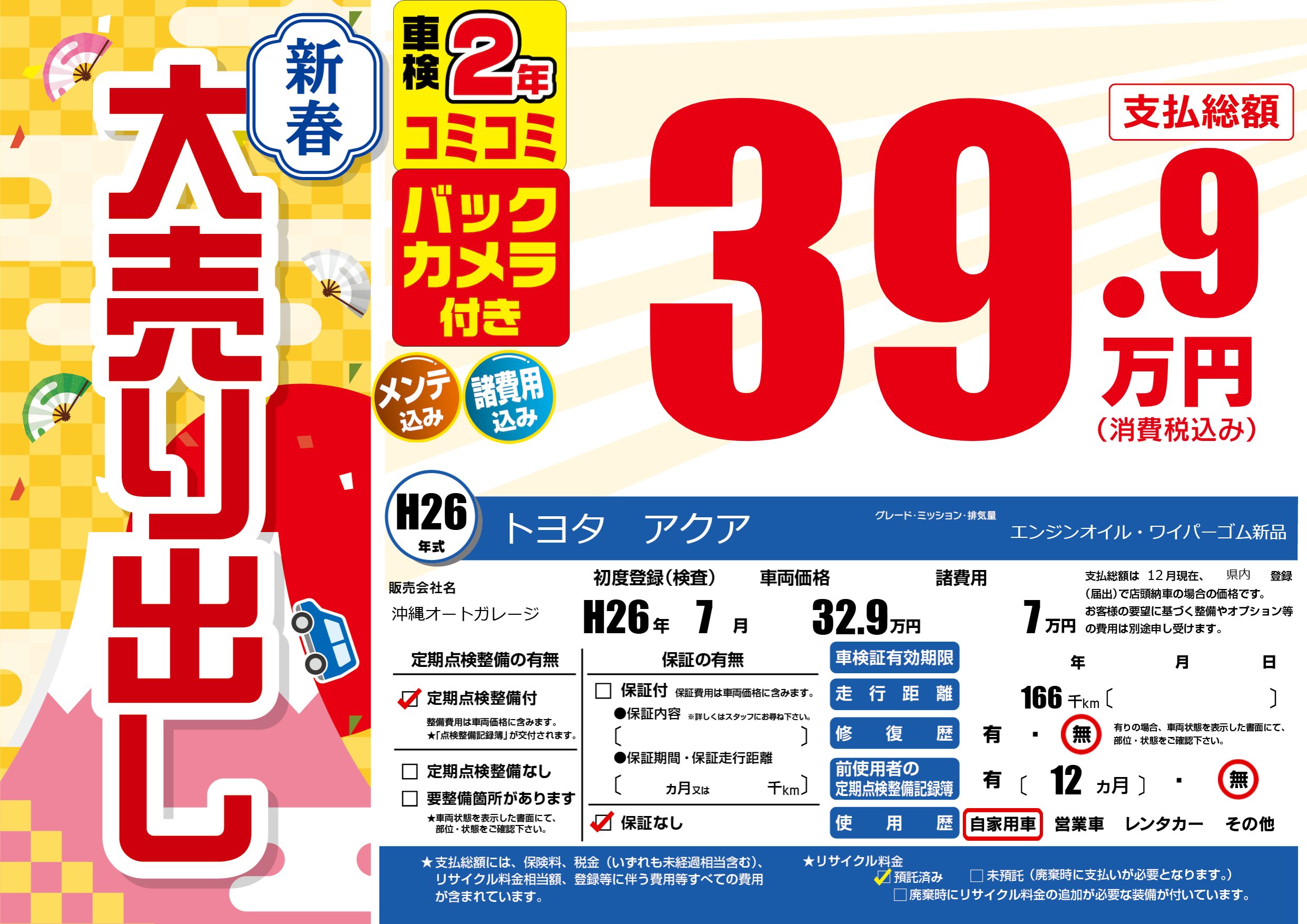 | 車名 | トヨタ アクア | グレード ミッション 排気量 |