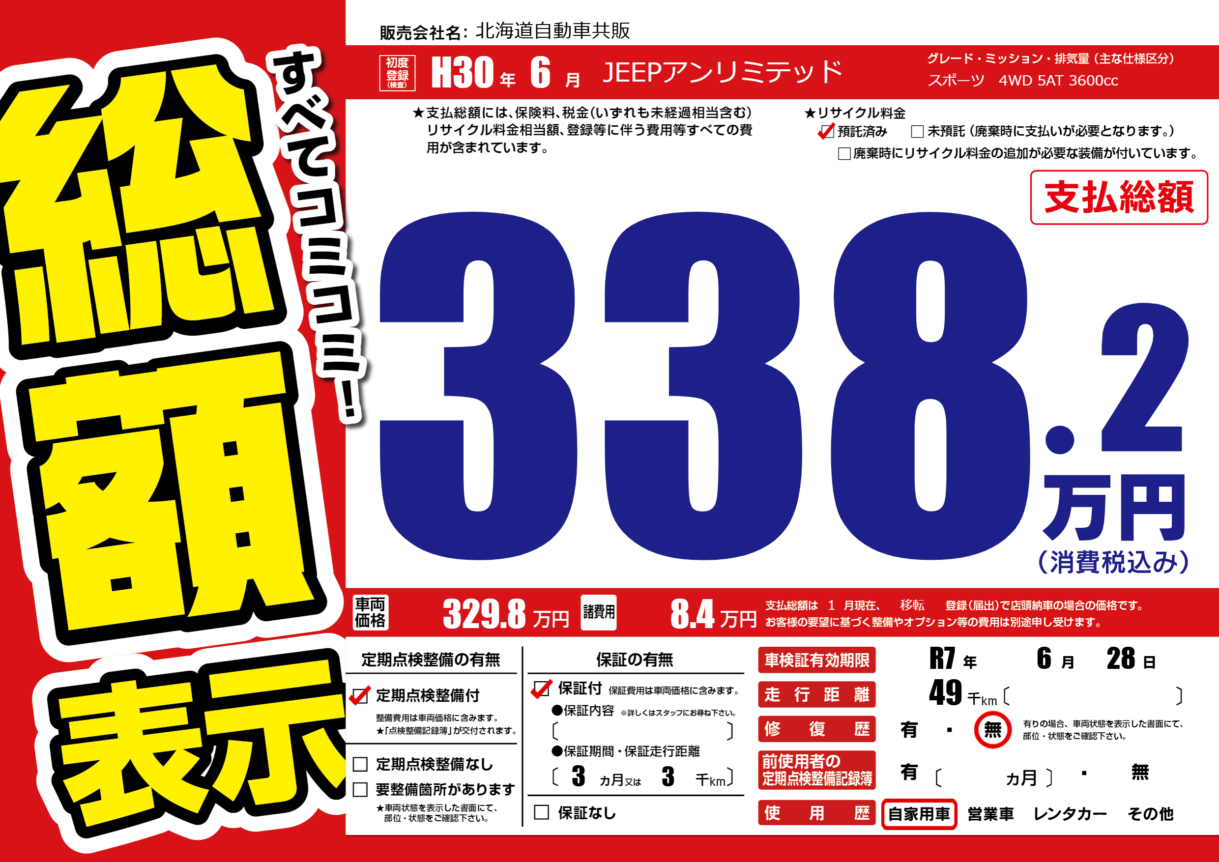 | 車検制限 | R7年 6月 28日 | ||