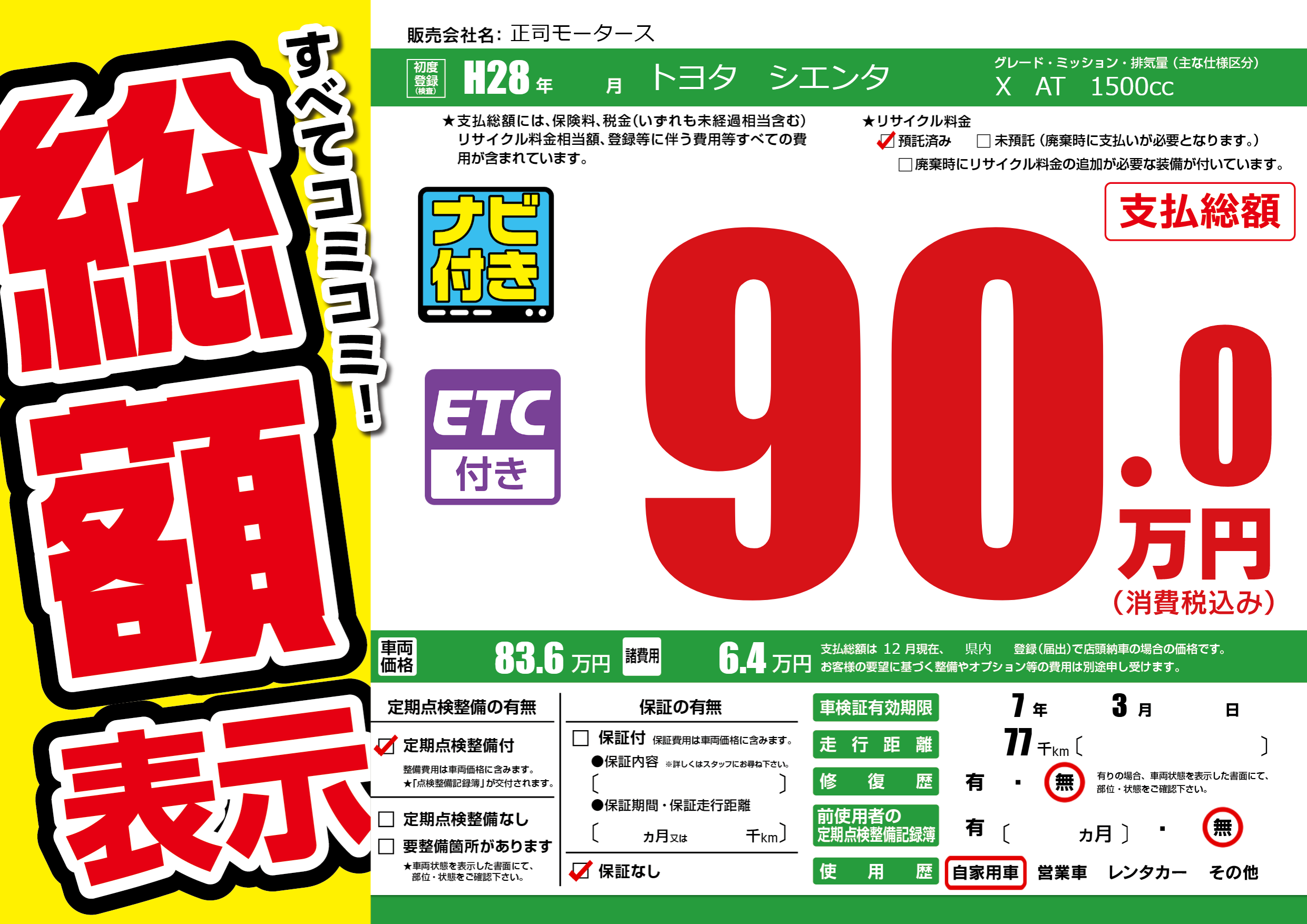 | 車検制限 | 7年 3月 - 日 | ||