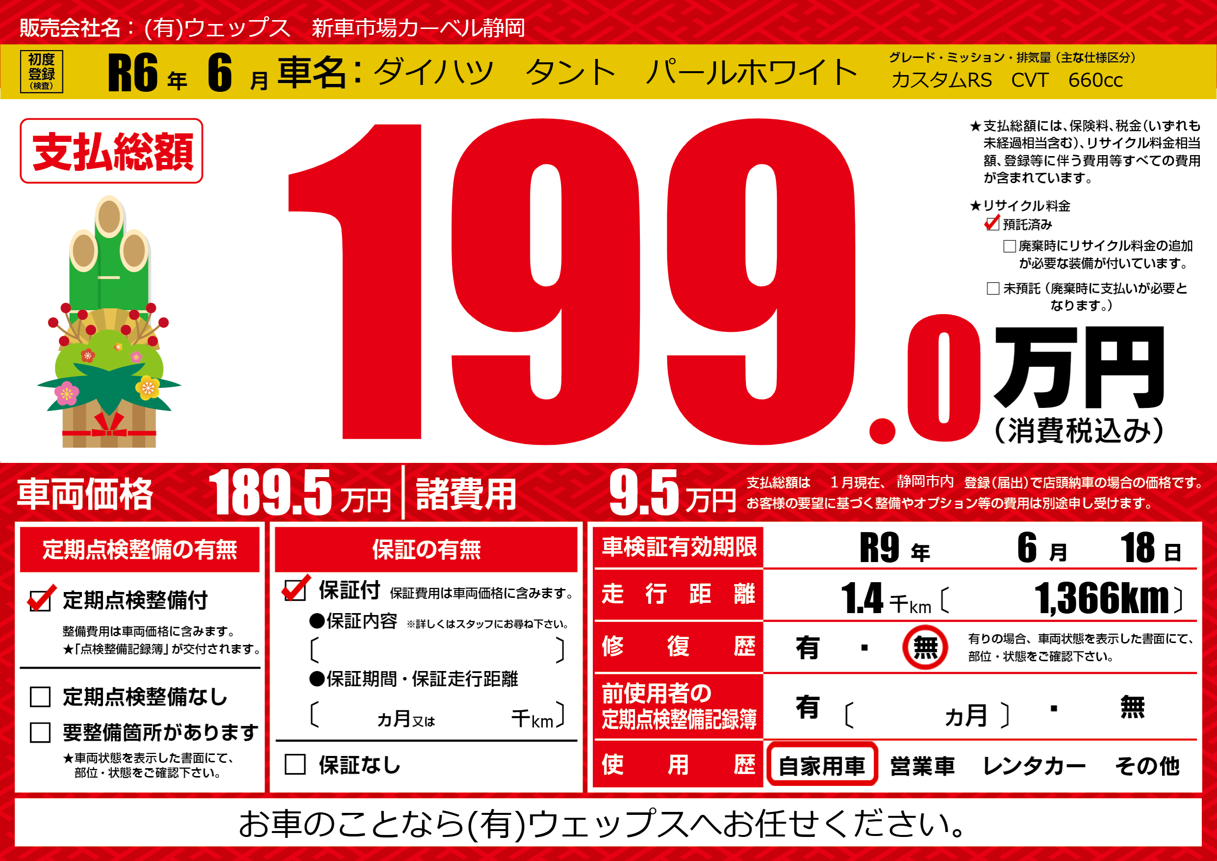 なし | 車検制限 | R9年6月18月 |