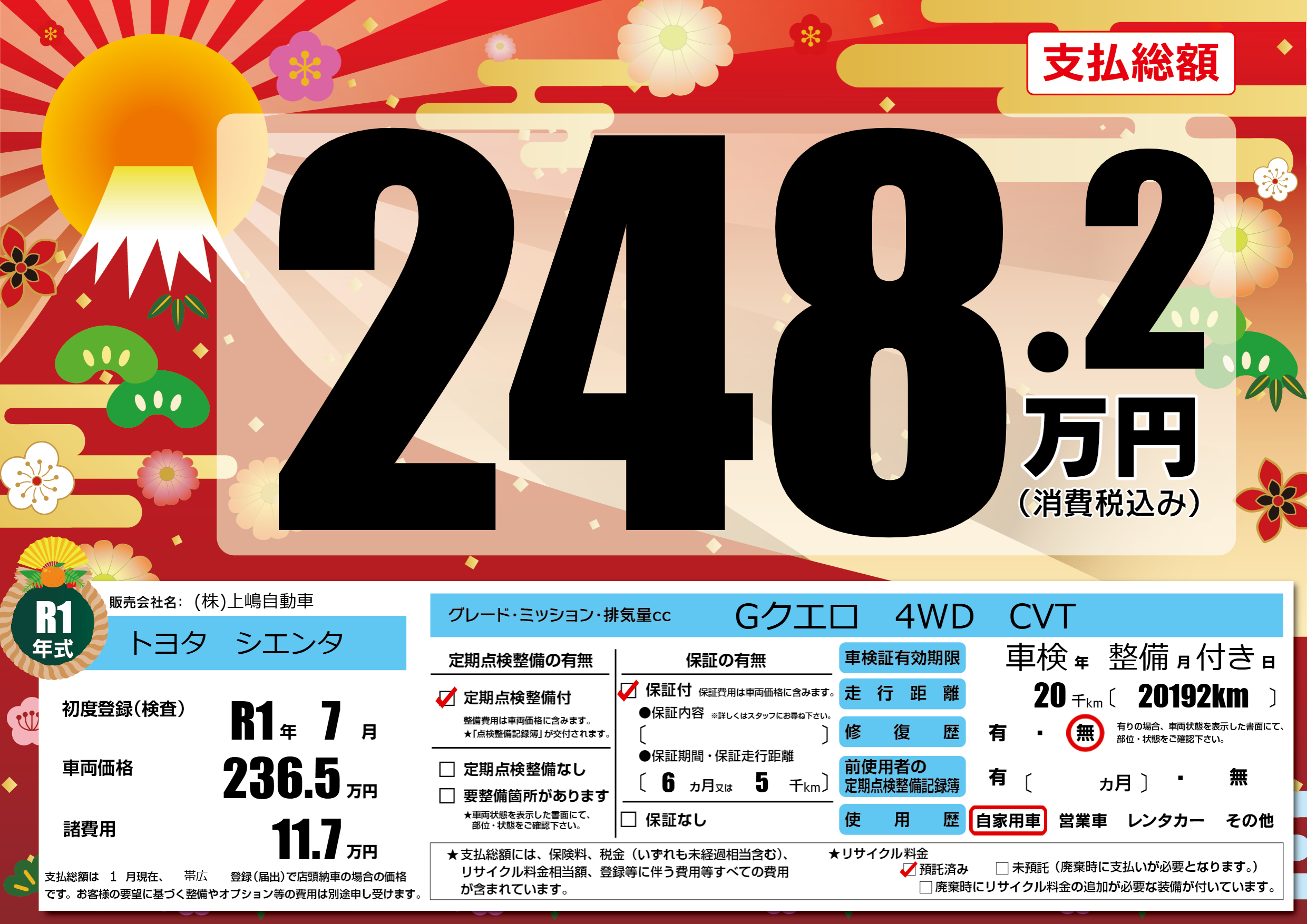 | 車名 | トヨタ シエンタ | グレード ミッション 排気量 |
