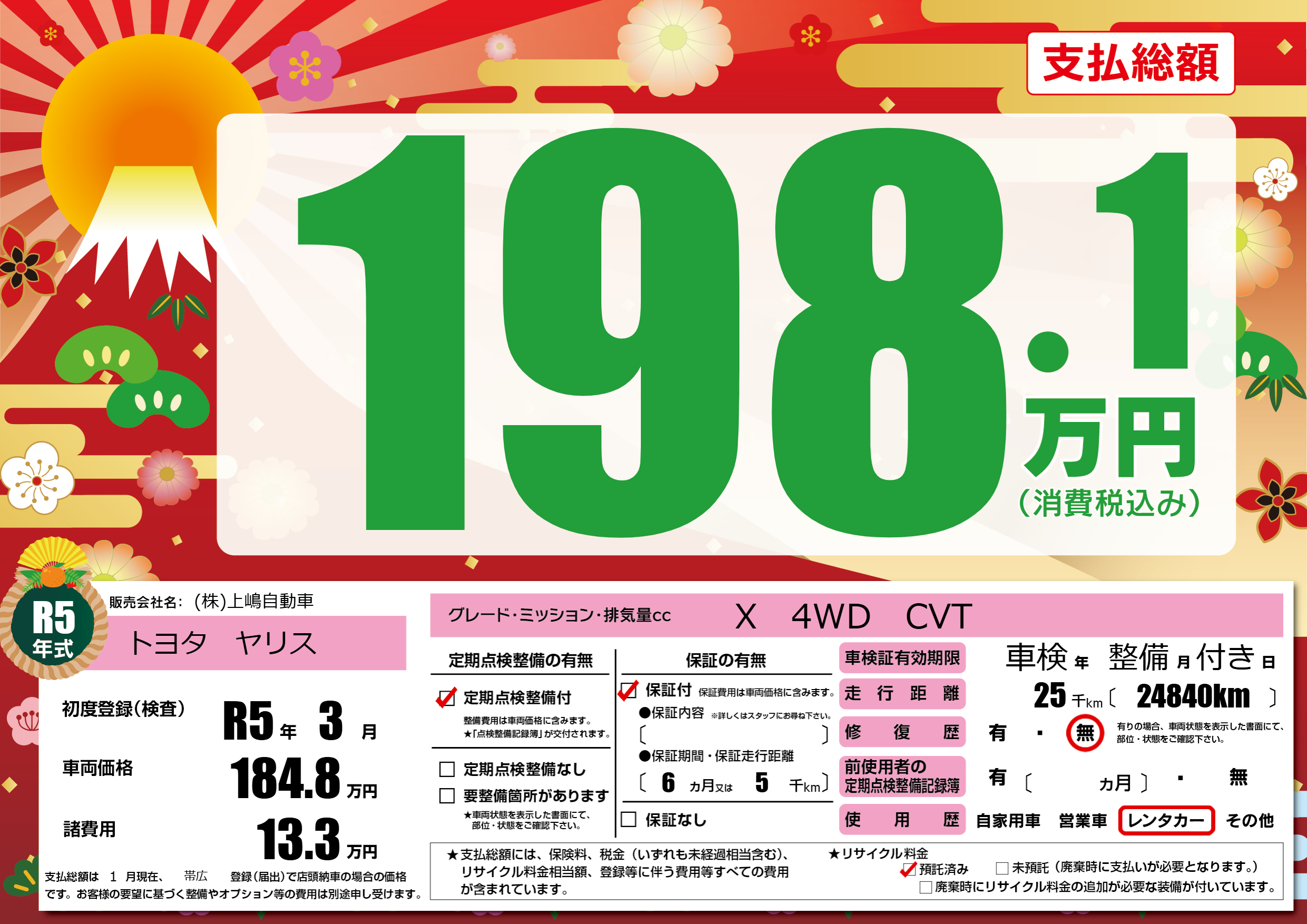 | 走行キロ | 2.5万km | 初年度登録 | R5年3月 |