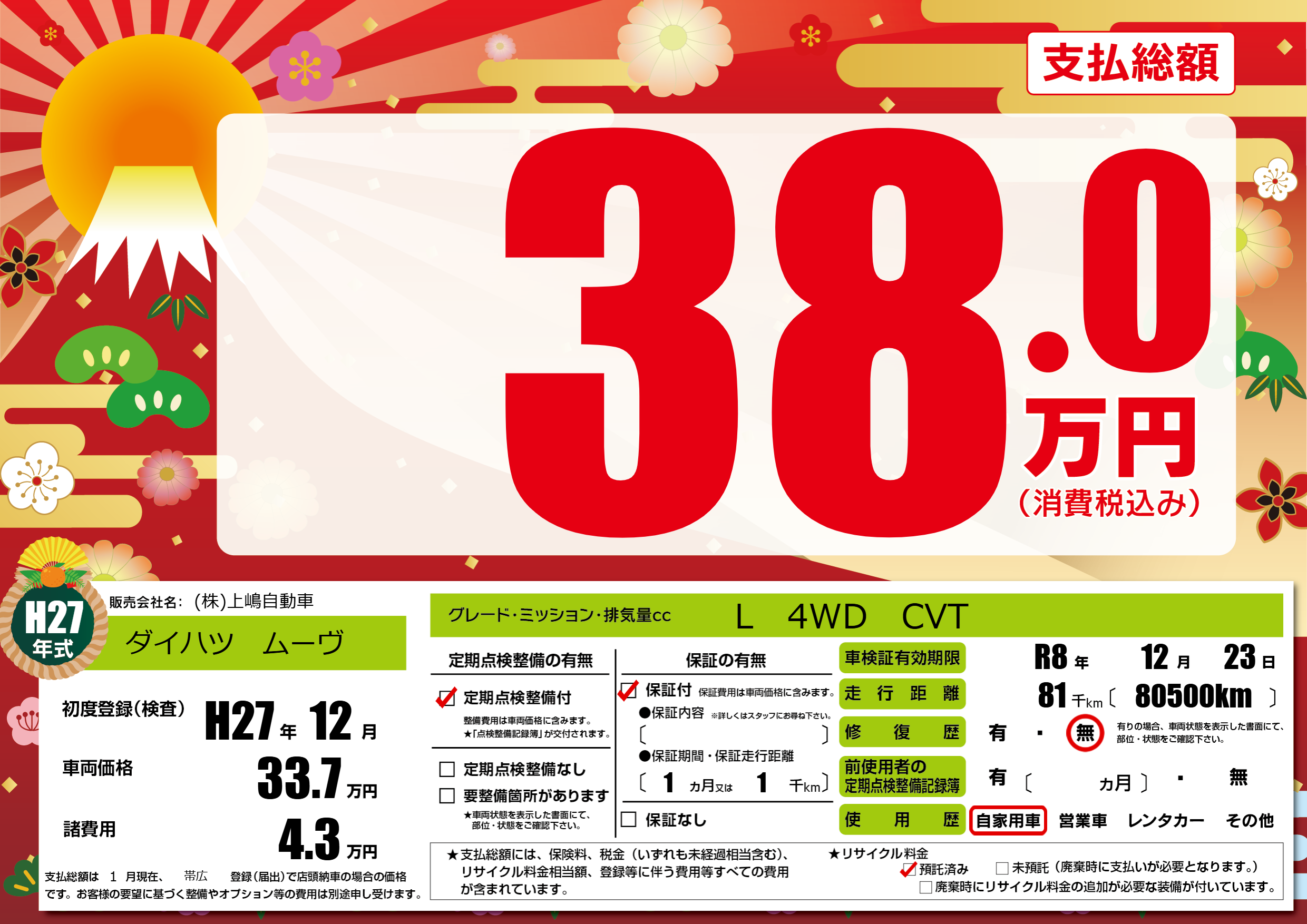 | 車名 | ダイハツ ムーヴ | グレード ミッション 排気量 |
