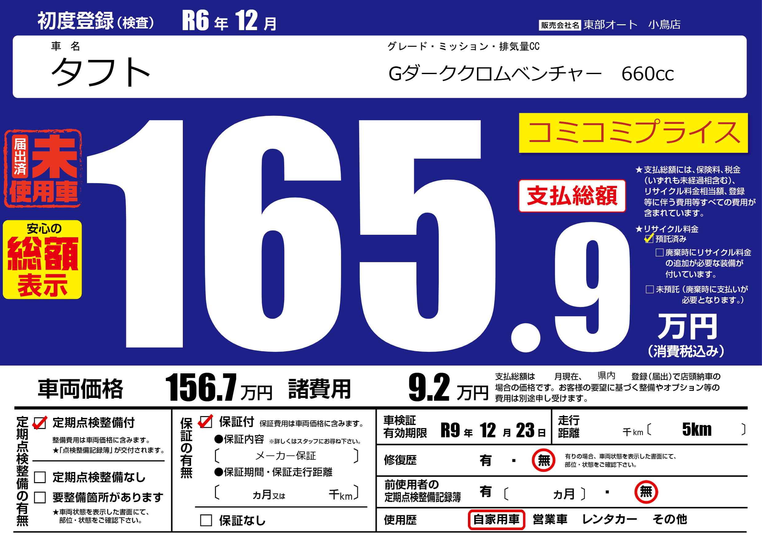 | 走行キロ | - | 初年度登録 | R6年12月 |