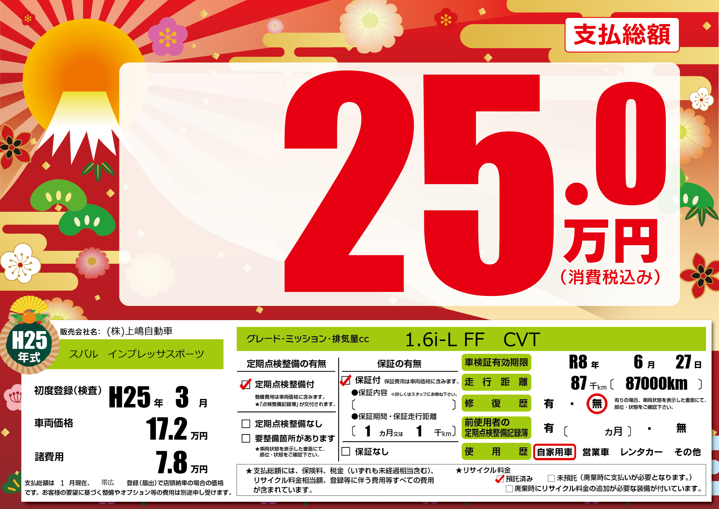 | 走行キロ | 8.7万km | 初年度登録 | H25年3月 |