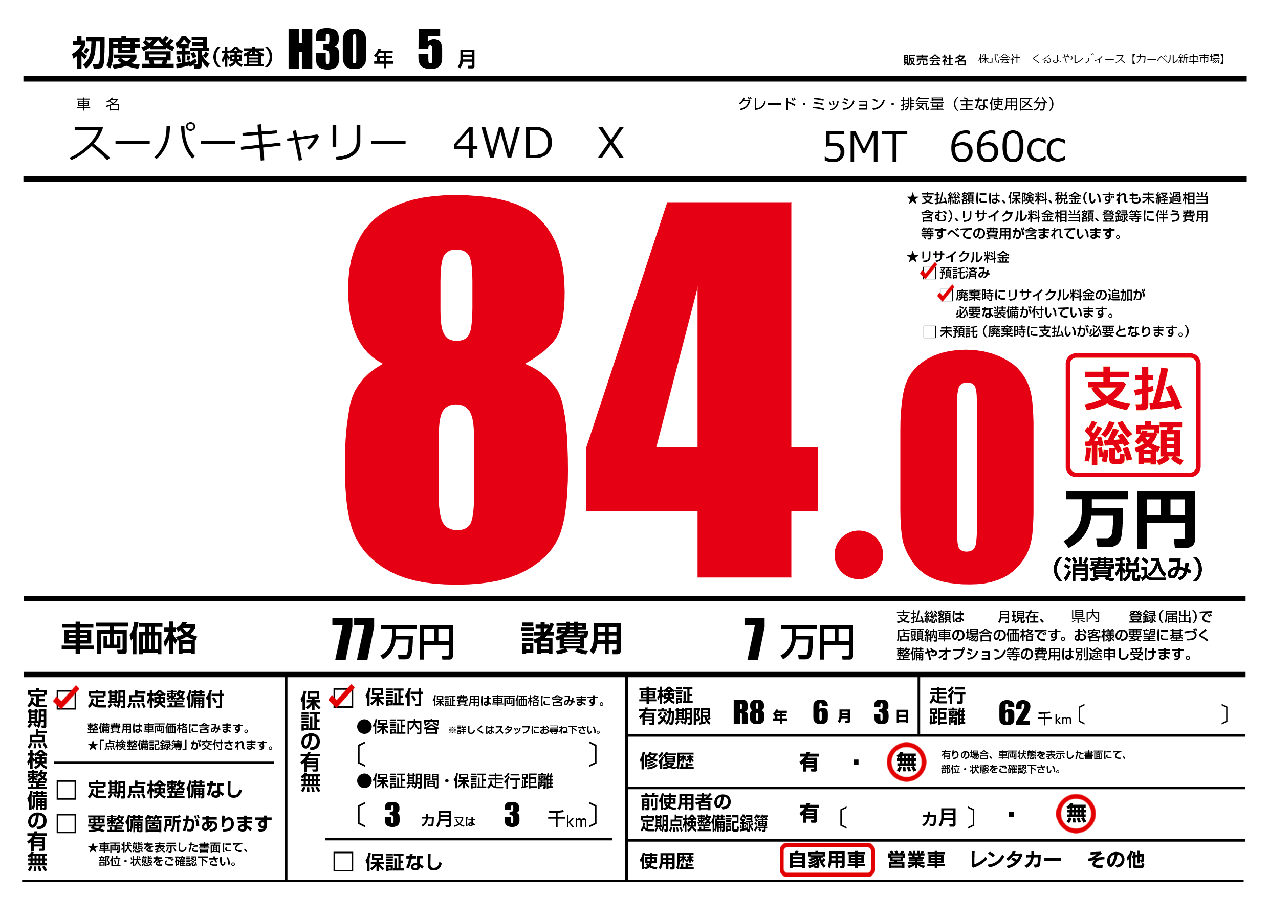 | 車検制限 | R8年 6月 3日 | ||