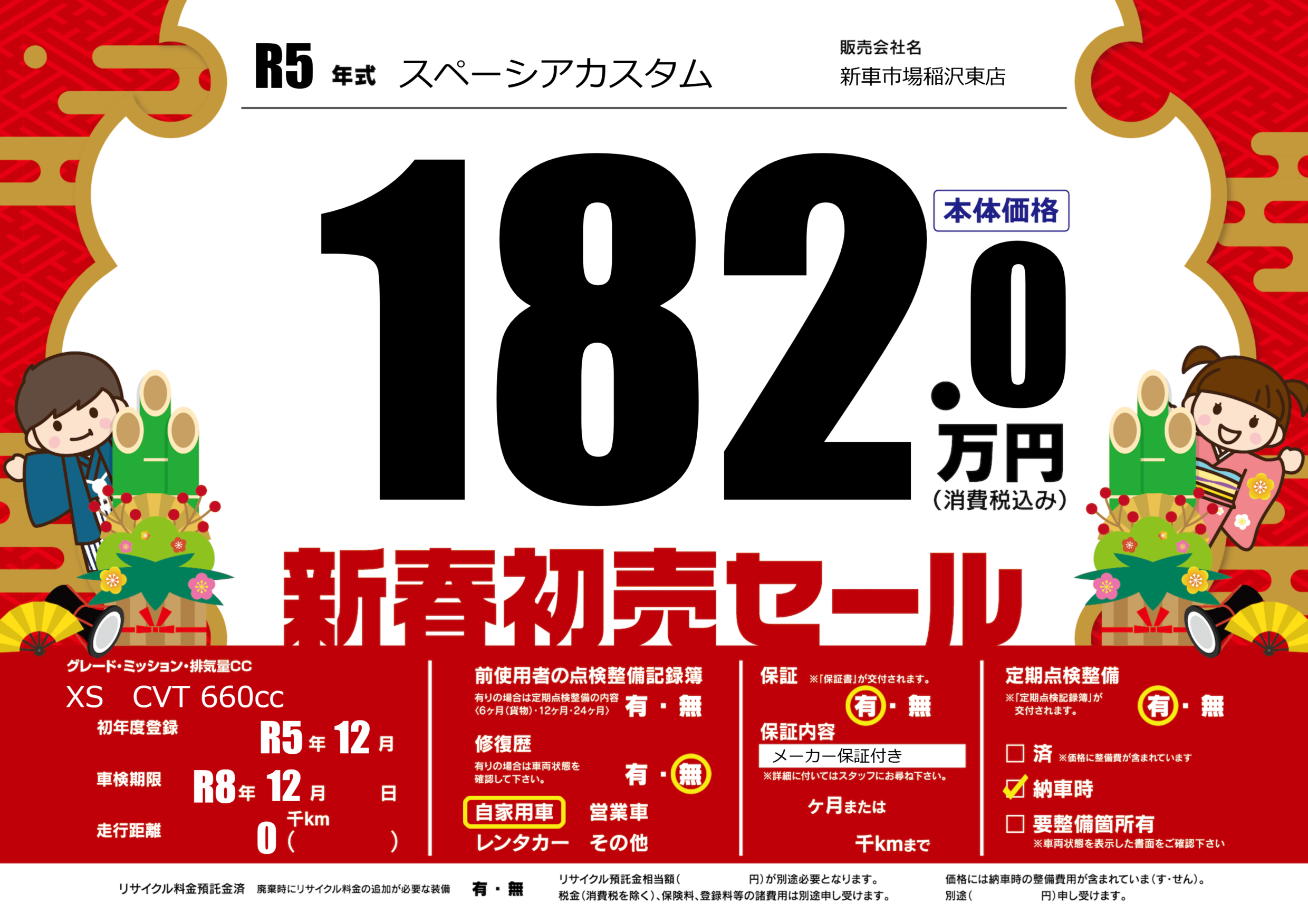 | 定期点検整備 | 定期点検整備あり 納車時あり | ||