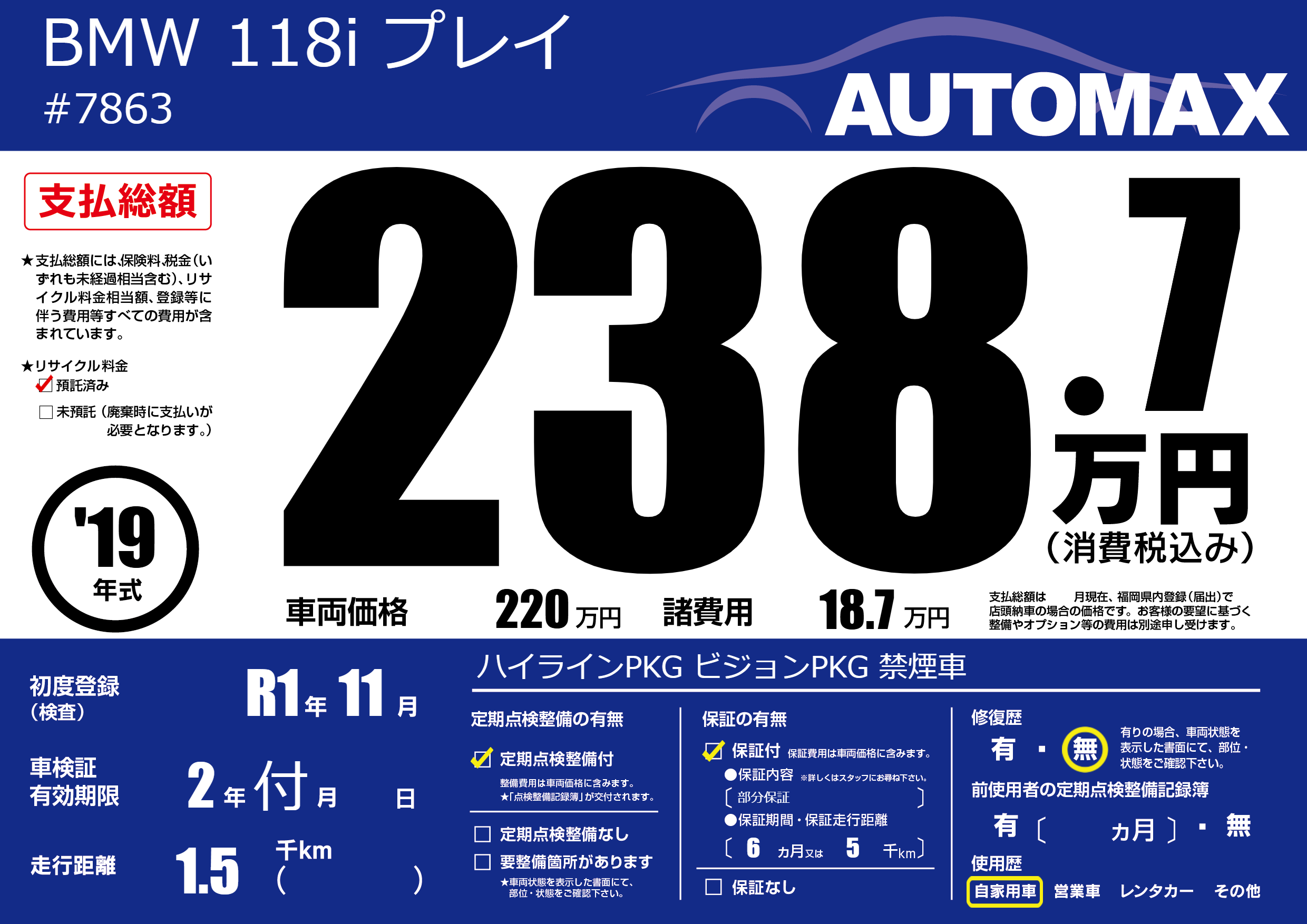 | 定期点検整備 | 定期点検整備あり | ||