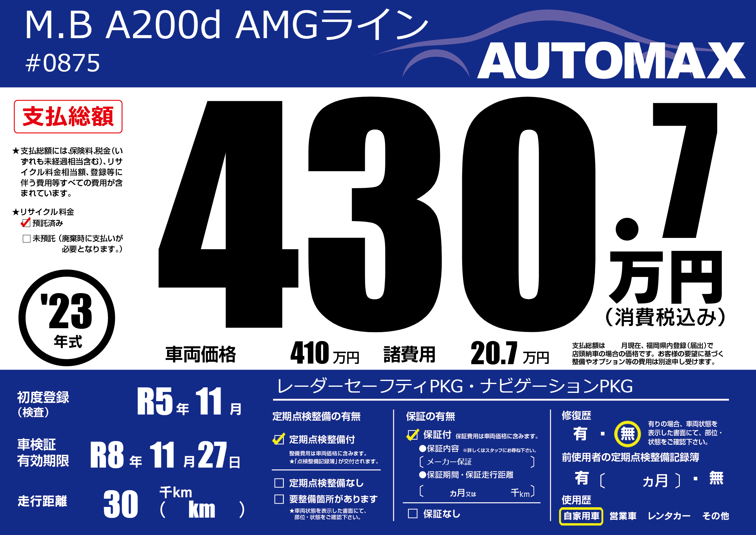| 車名 | M.B A200d AMGライン | グレード ミッション 排気量 |