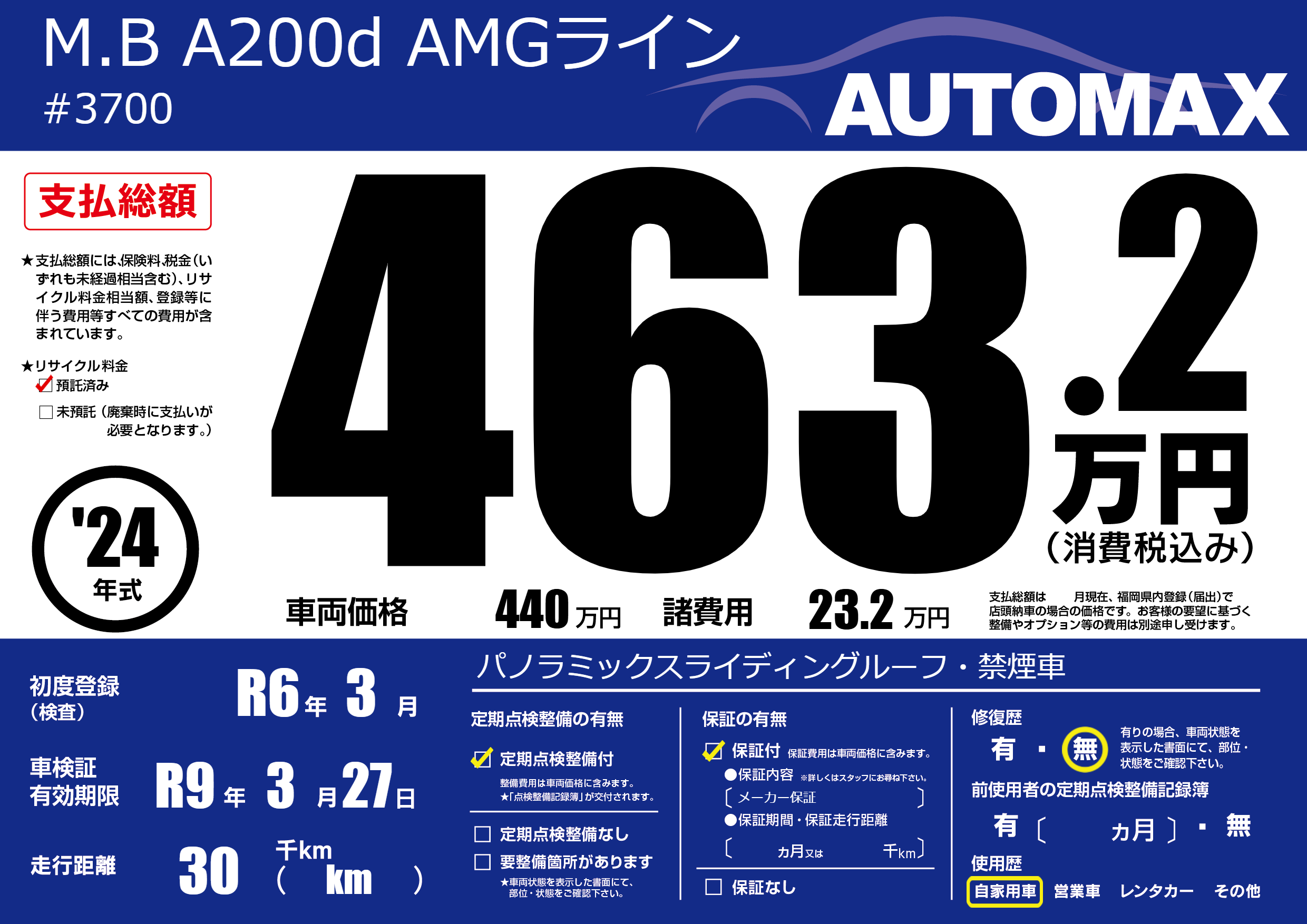 | 車名 | M.B A200d AMGライン | グレード ミッション 排気量 |