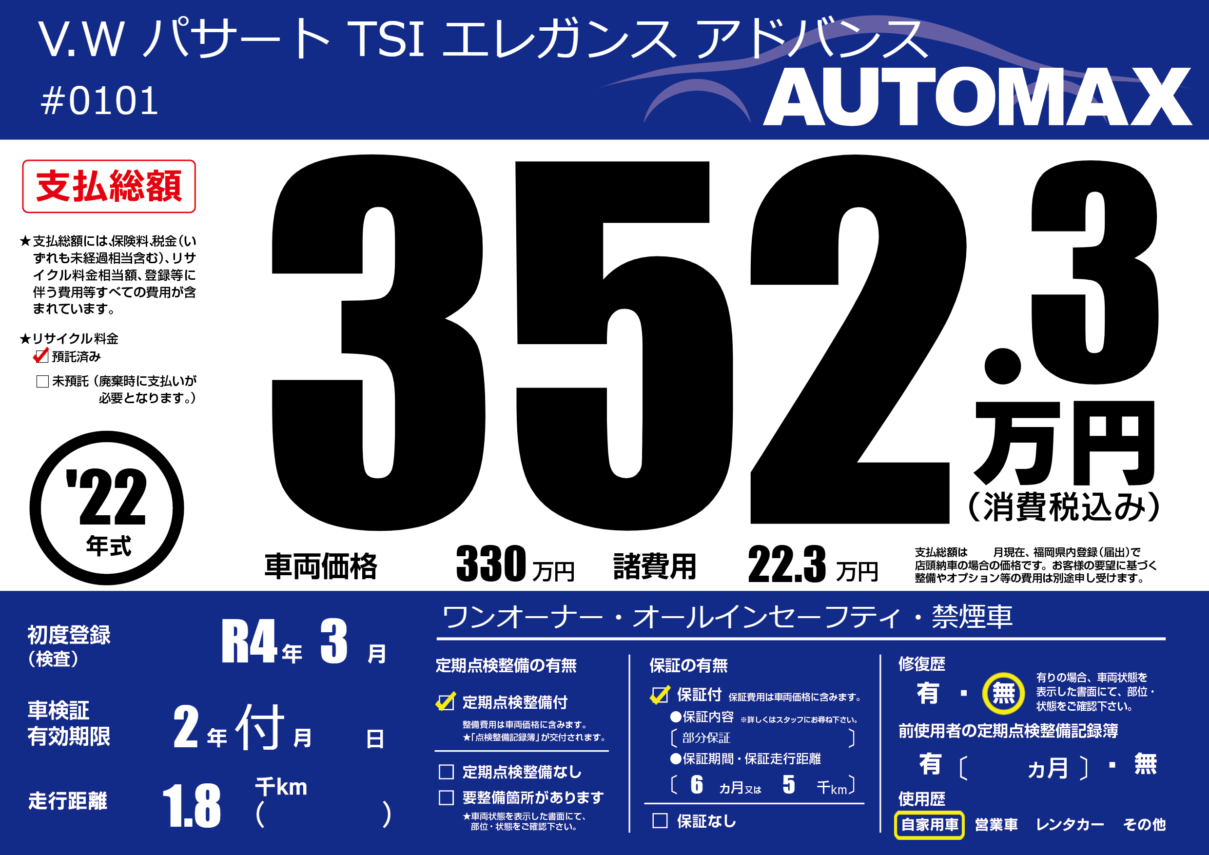 なし | 車検制限 | 2年付月---月 |