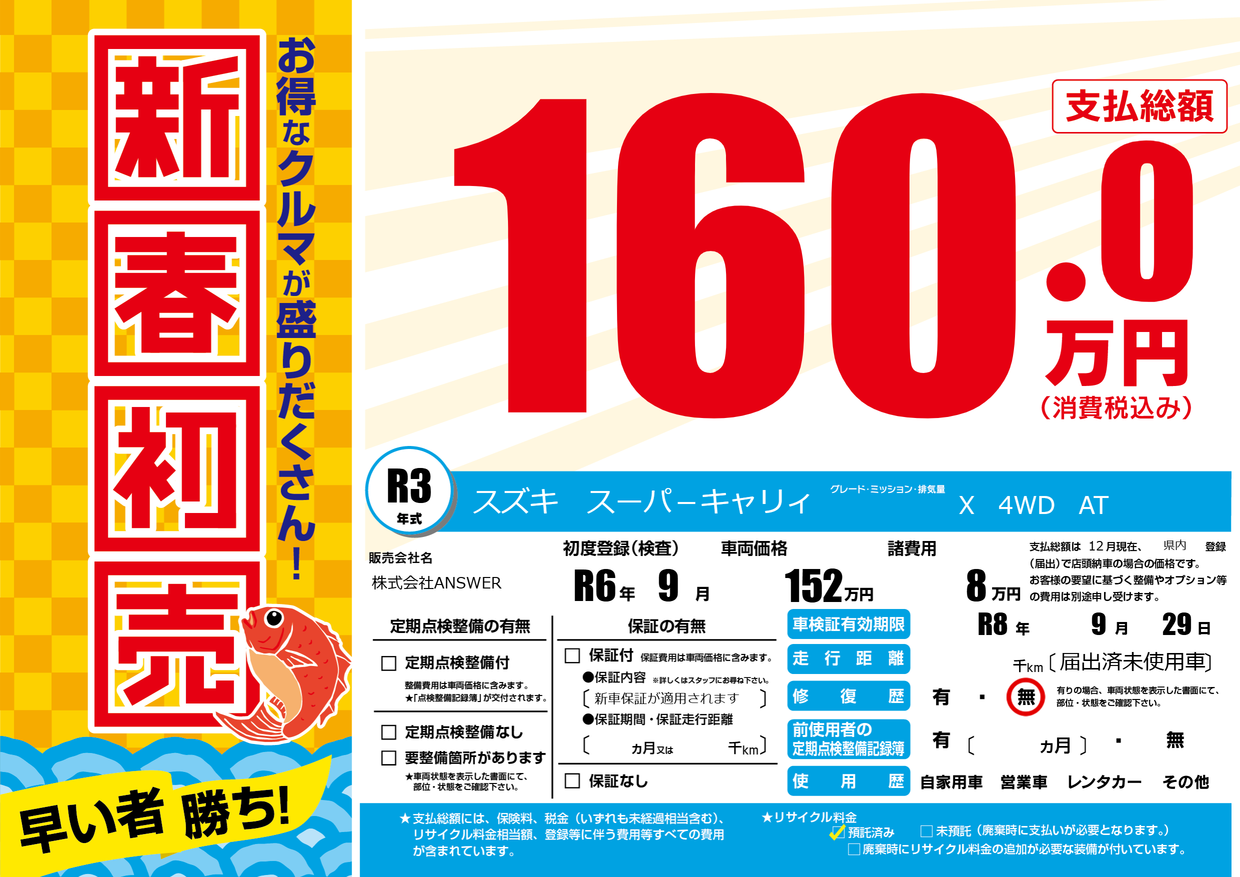 保証なし 保証内容(新車保証が適用されます) ---ヶ月または()千kmまで |