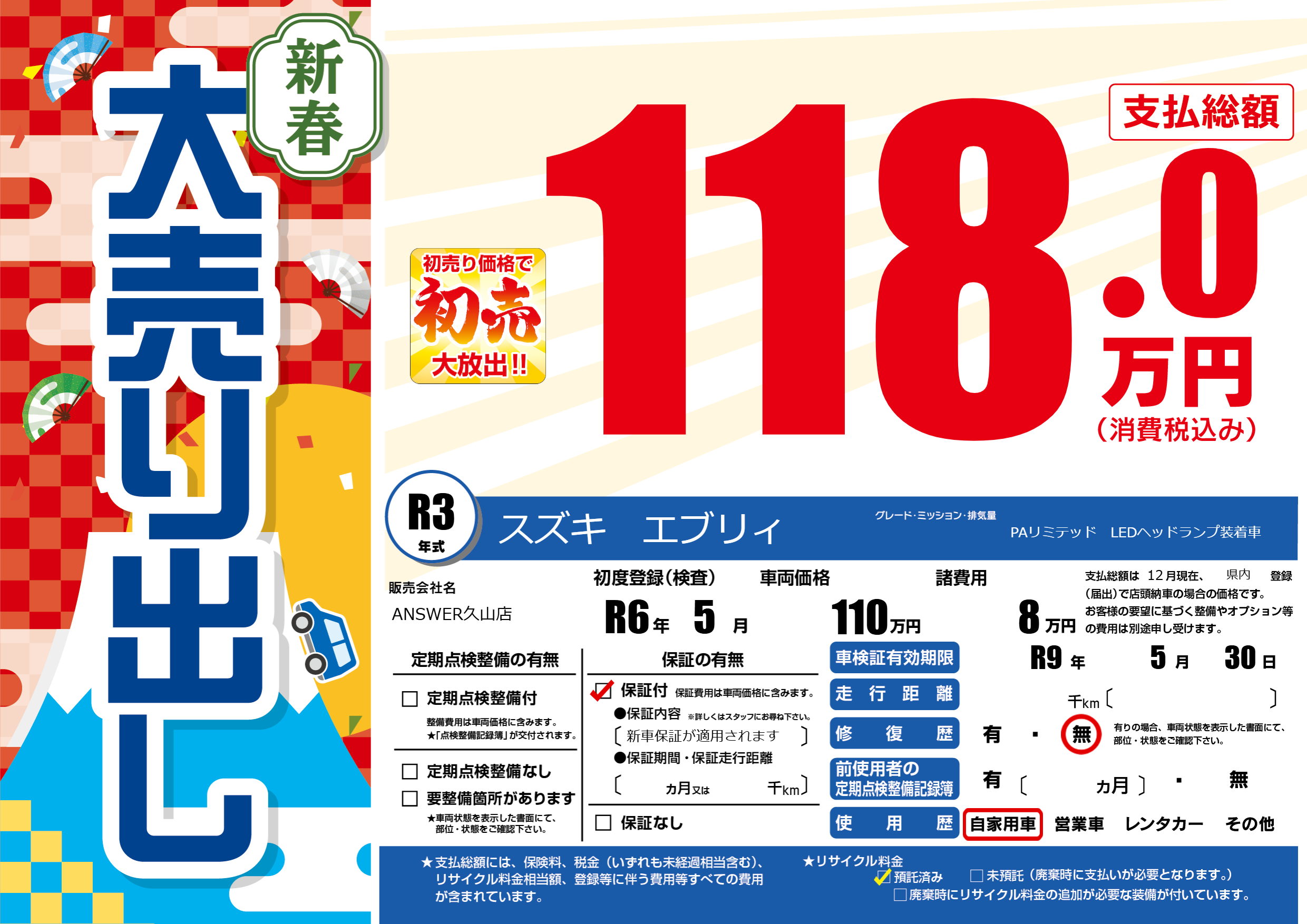車検制限 R9年 5月 30日