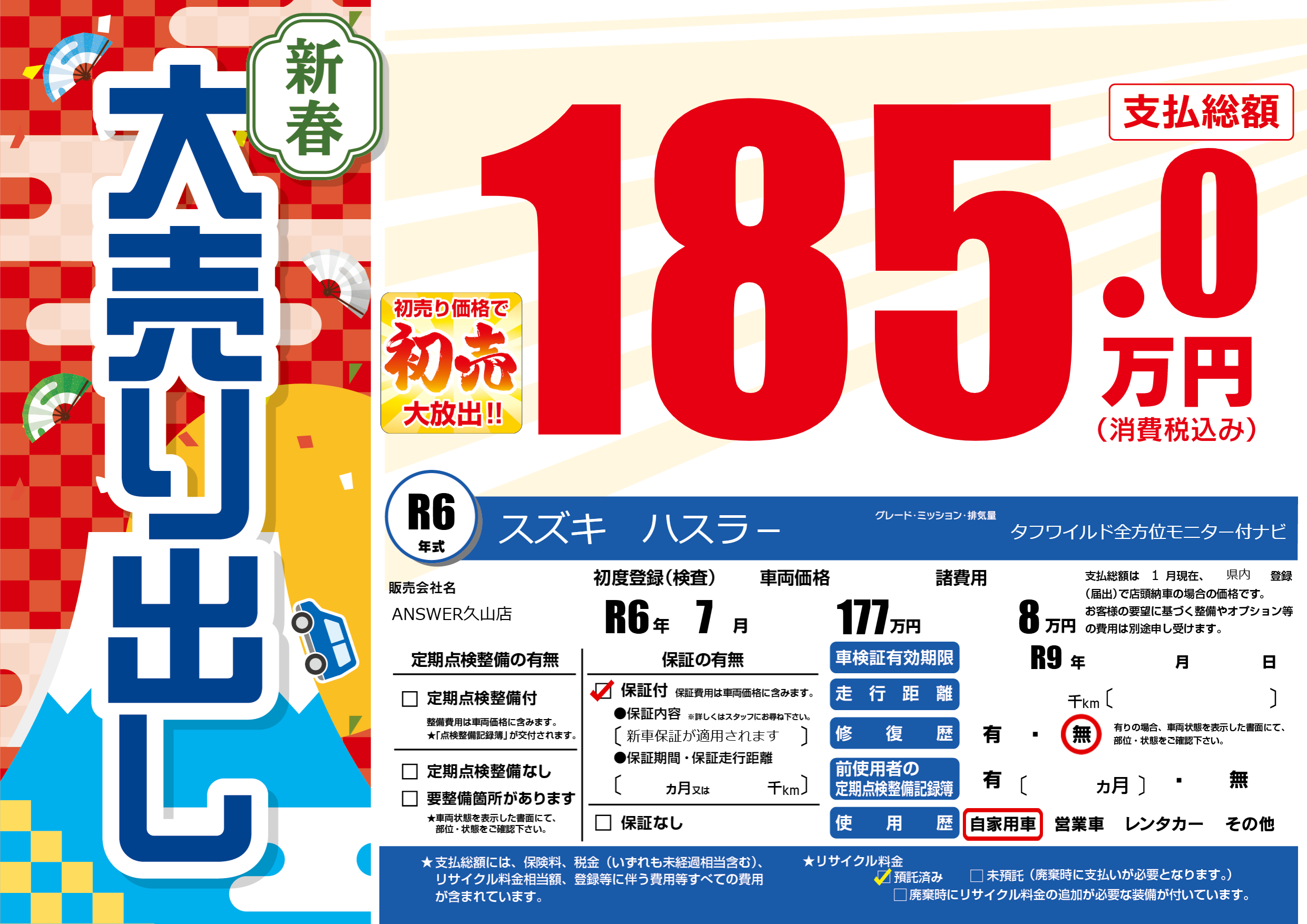 | 車検制限 | R9年 - 月 - 日 | ||