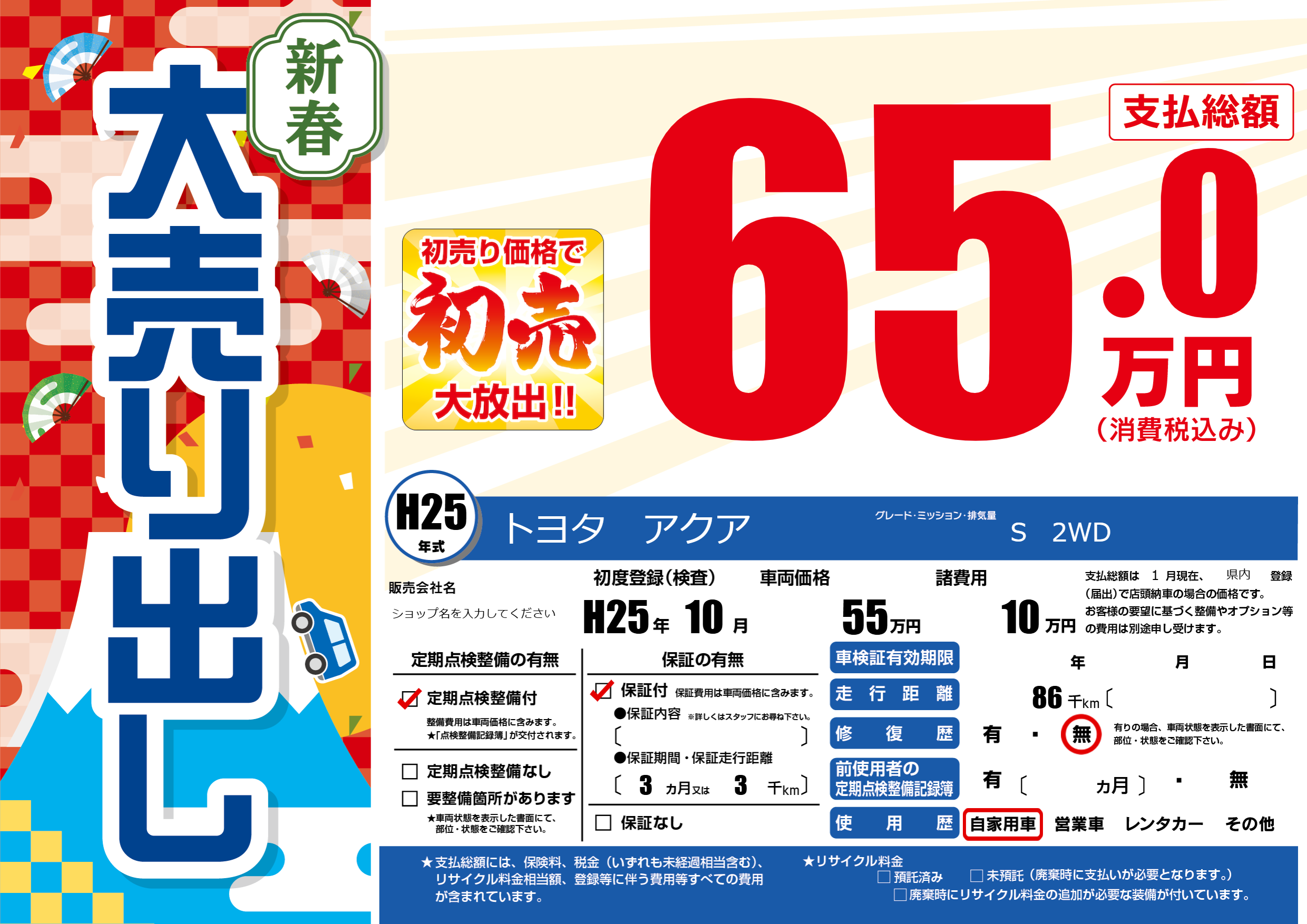 | 走行キロ | 8.6万km | 初年度登録 | H25年10月 |