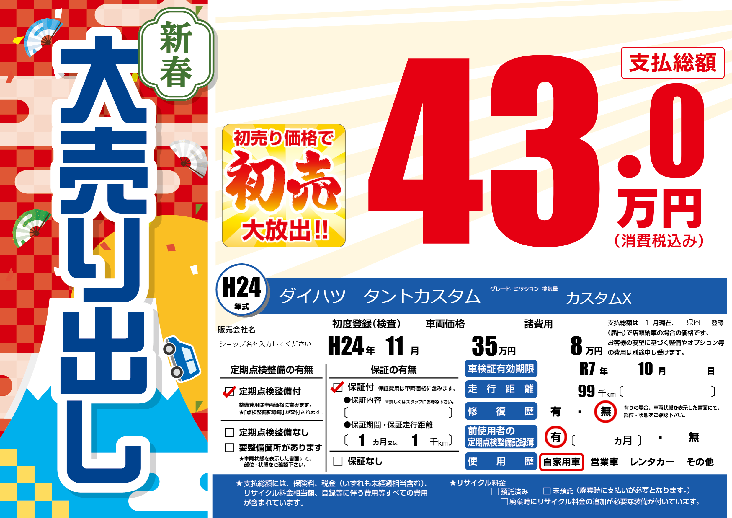 | 走行キロ | 9.9万km | 初年度登録 | H24年11月 |