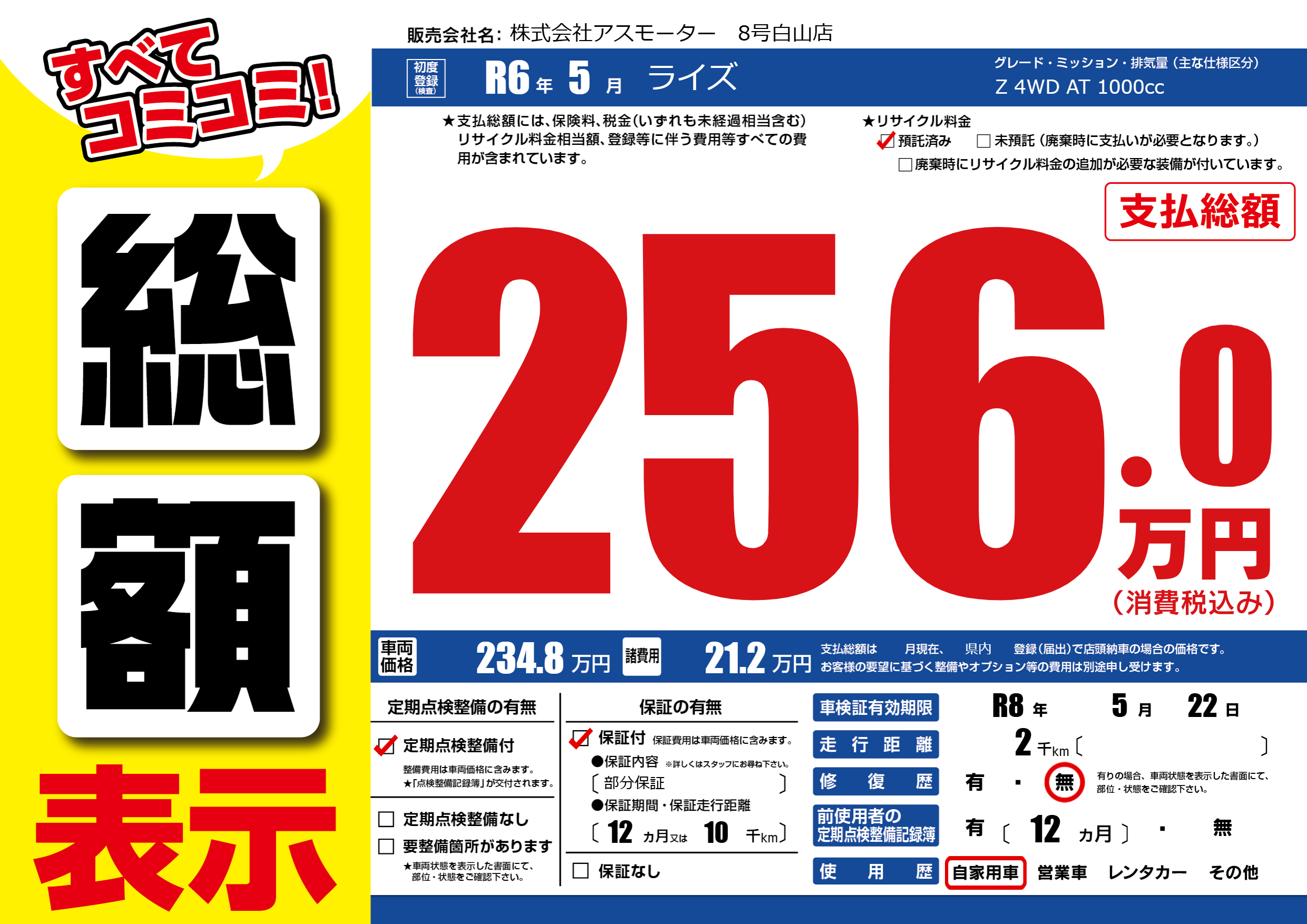 なし | 車検制限 | R8年5月22月 |