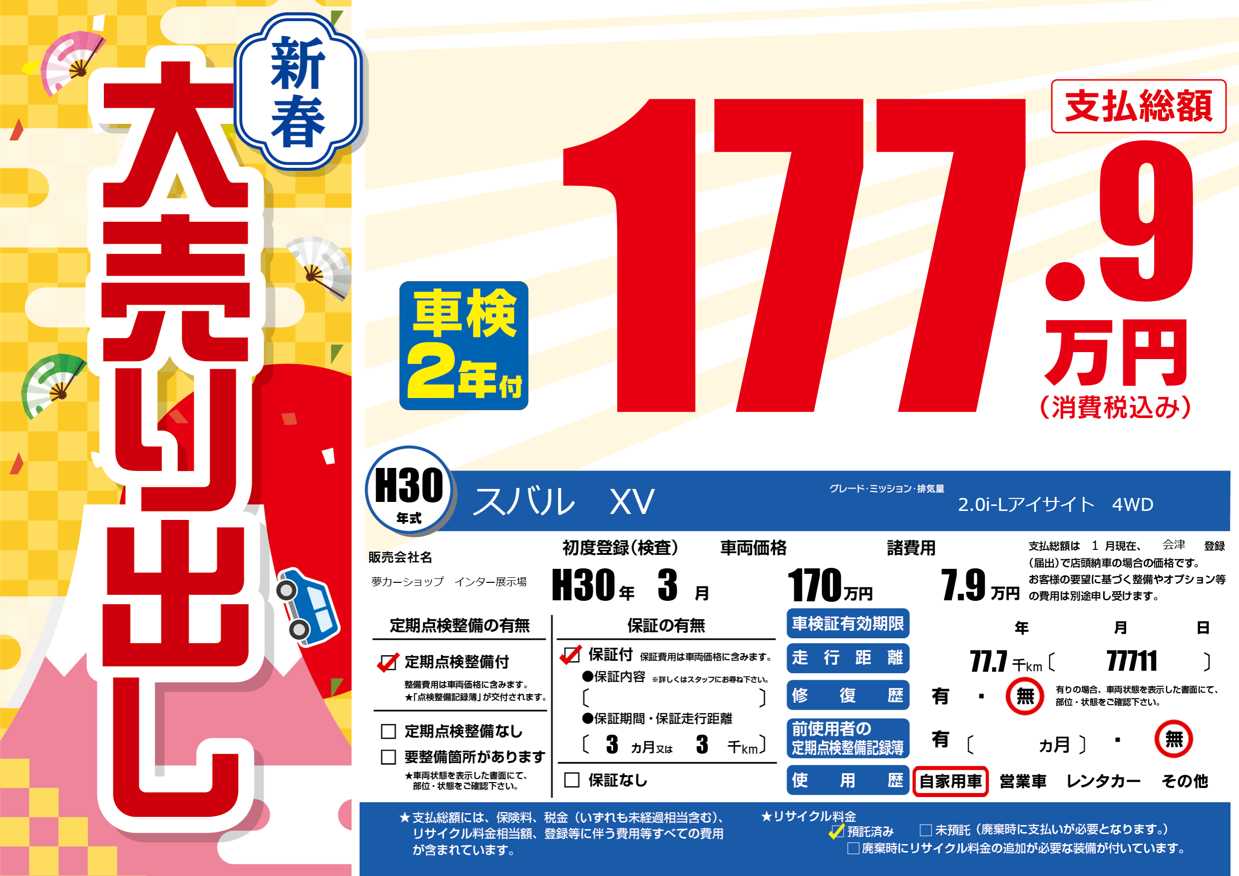 | 車名 | スバル XV | グレード ミッション 排気量 |