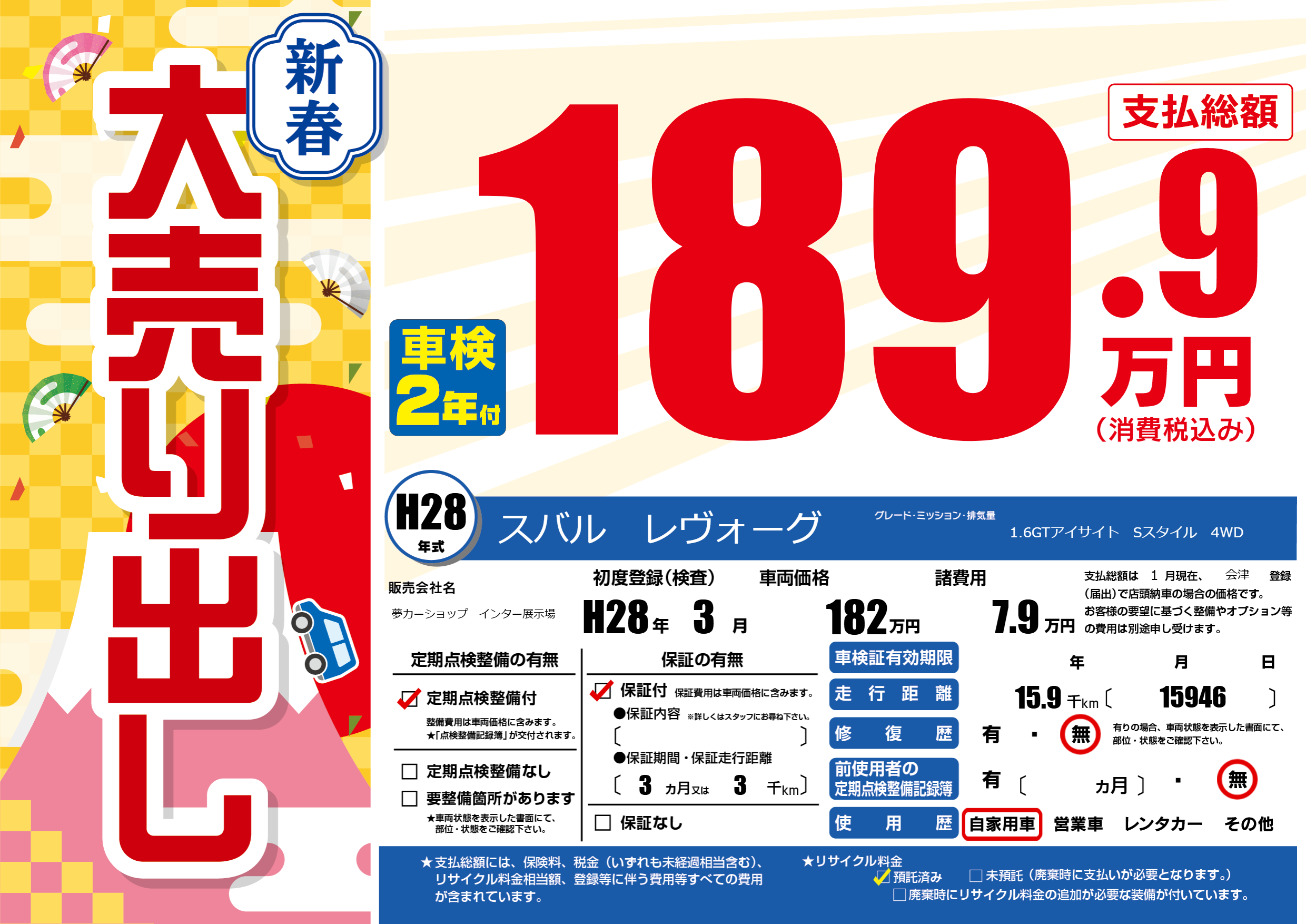 | 初年度登録 | H28年3月 | ||