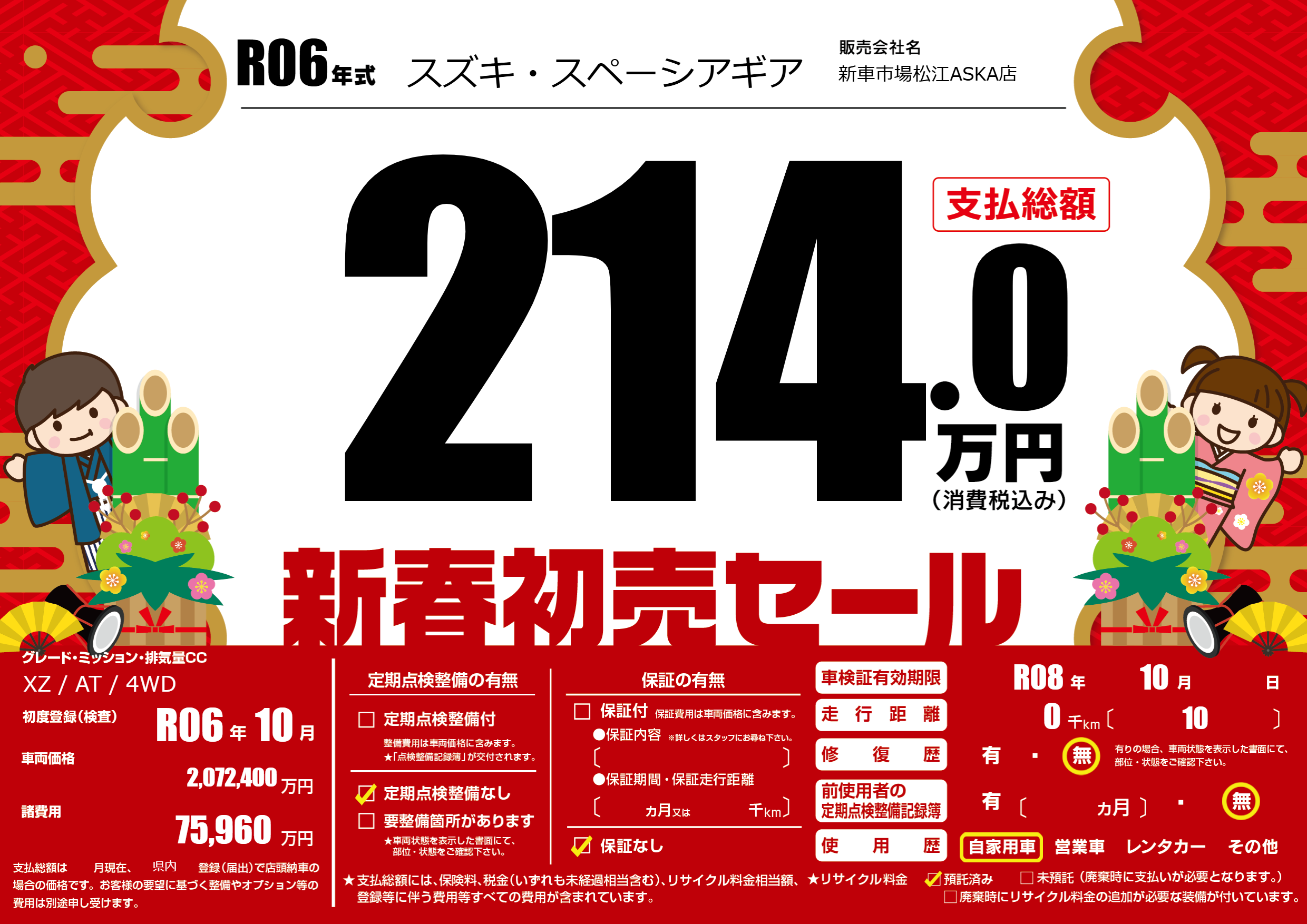 | 走行キロ | - | 初年度登録 | R06年10月 |