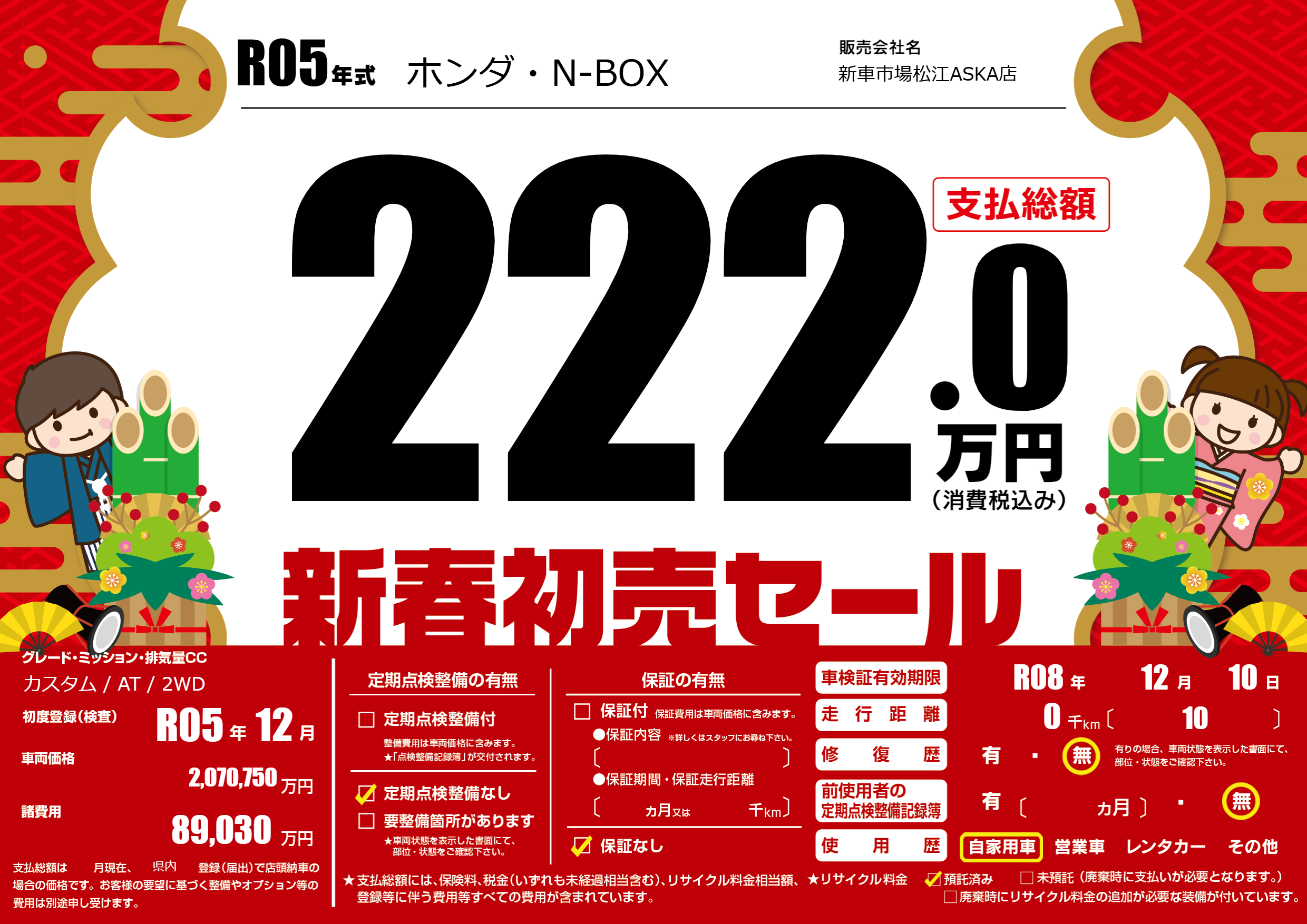 | 走行キロ | - | 初年度登録 | R05年12月 |