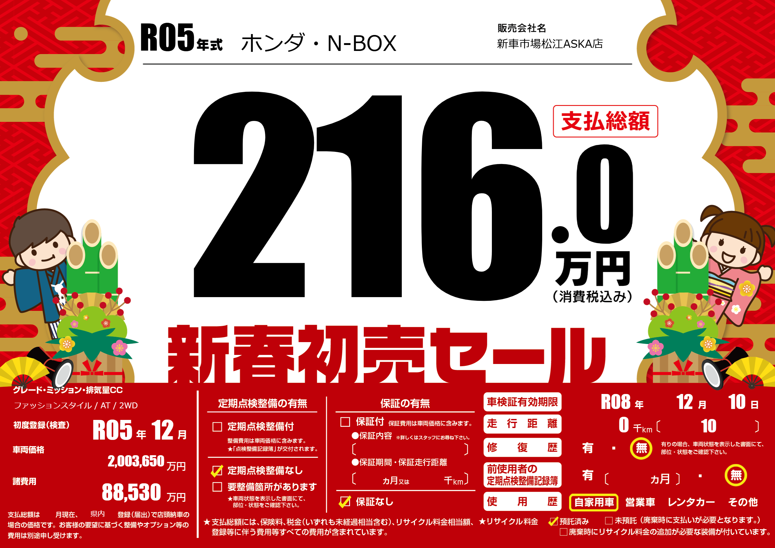 | 走行キロ | - | 初年度登録 | R05年12月 |