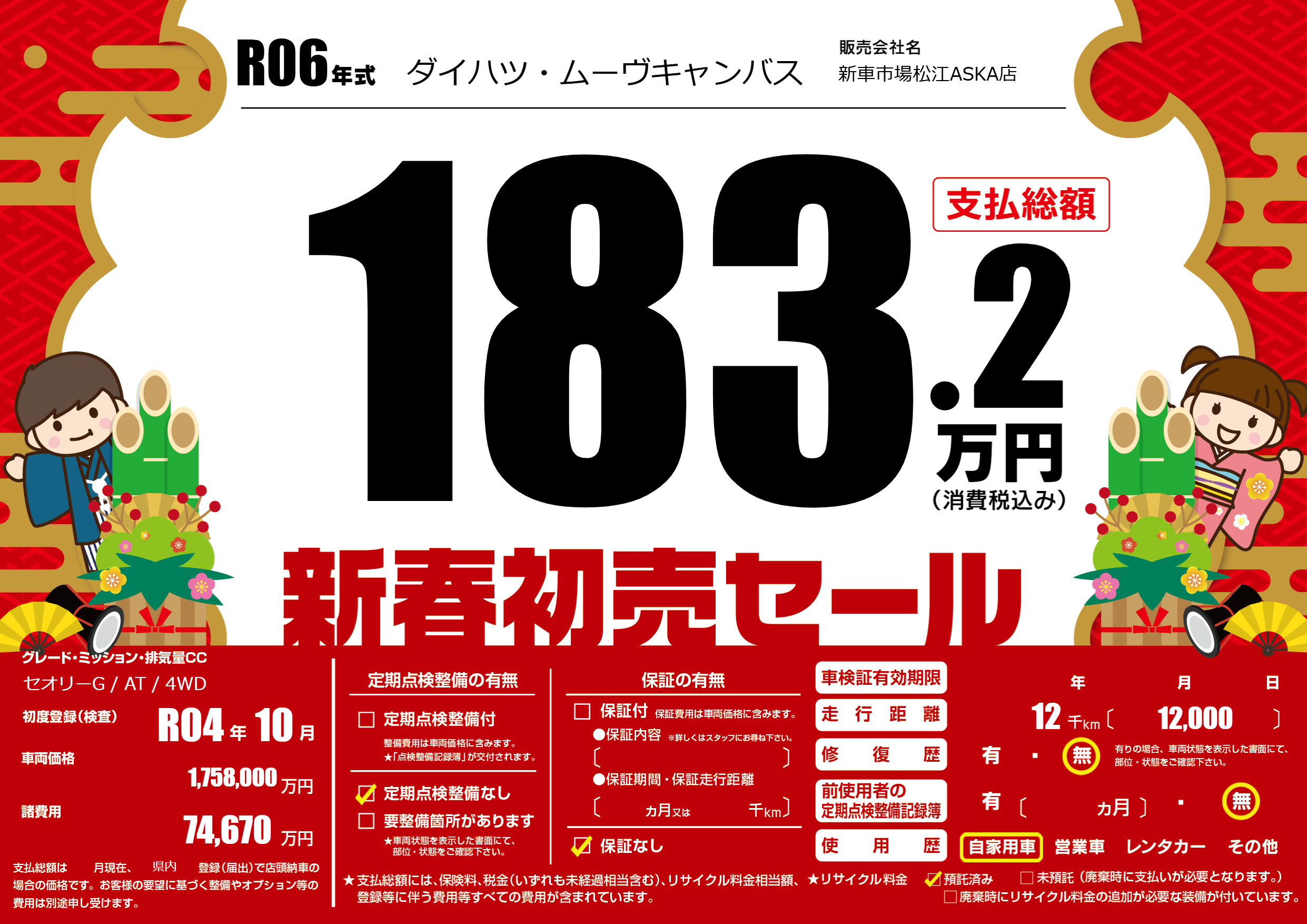 | 走行キロ | 1.2万km | 初年度登録 | R04年10月 |