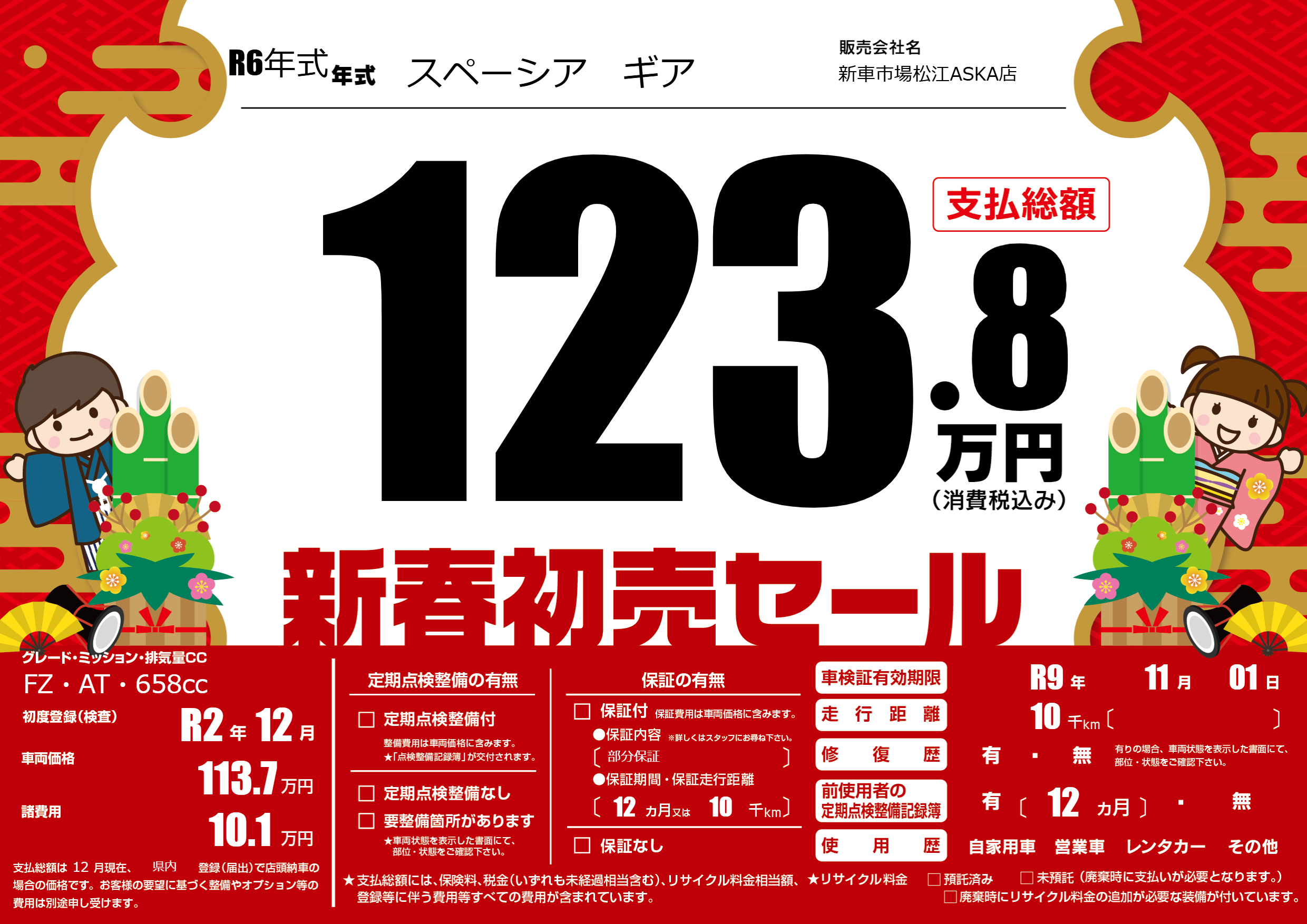 | 車名 | スペーシア ギア | グレード ミッション 排気量 |