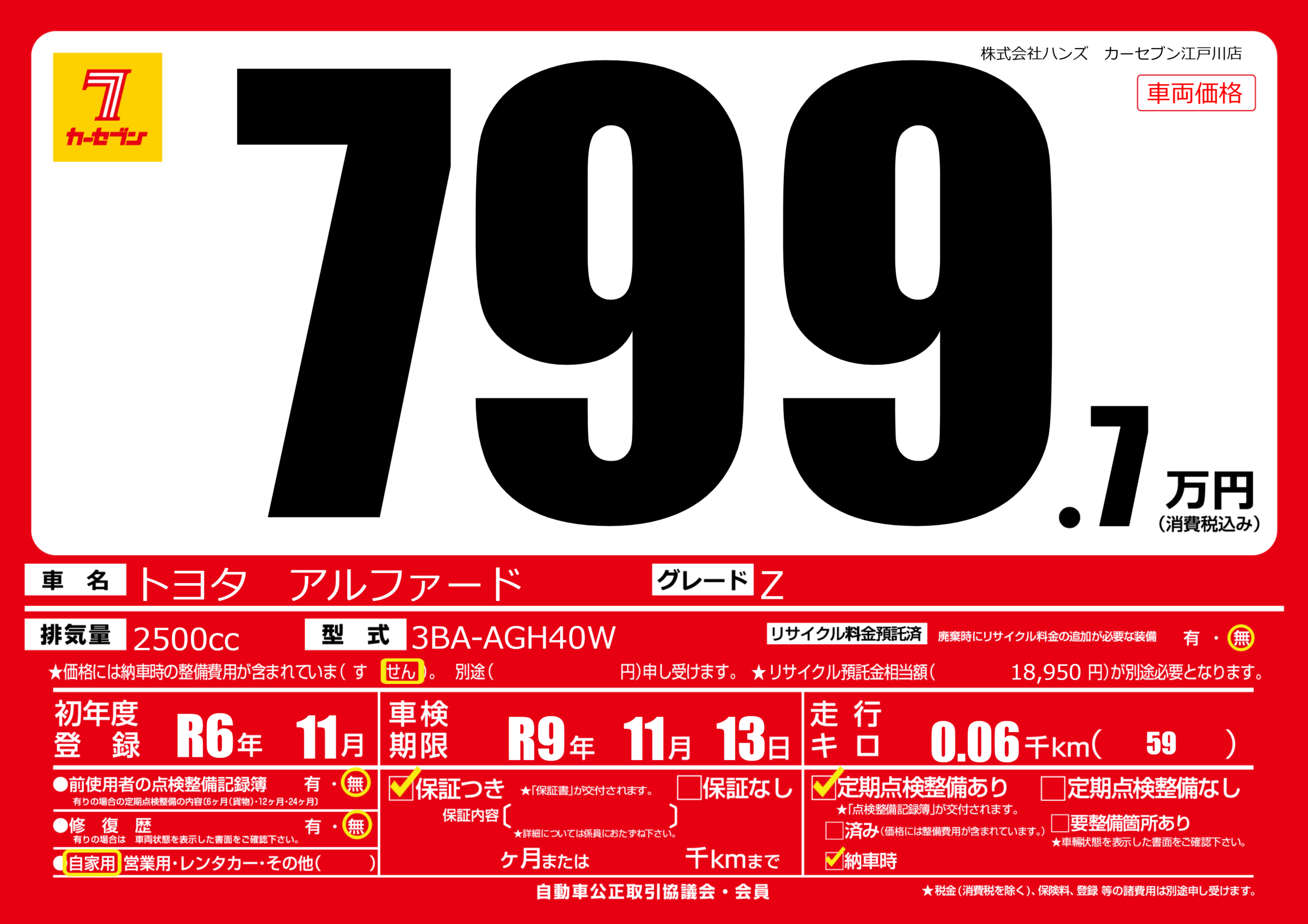 なし | 車検制限 | R9年11月13月 |