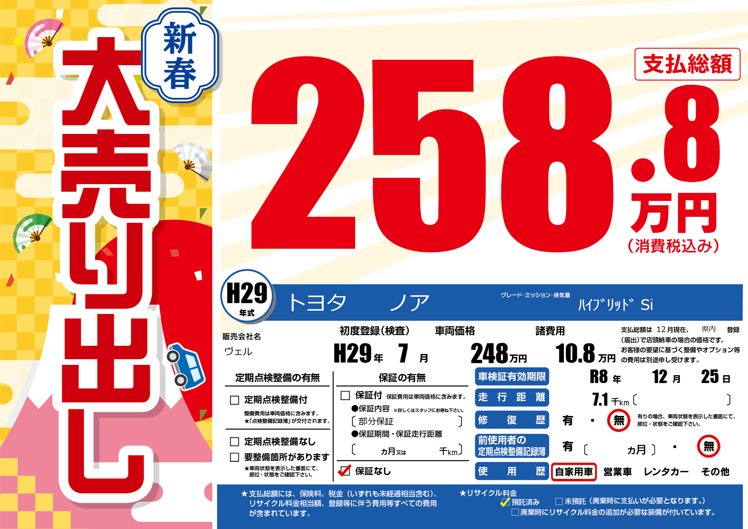 | 車名 | トヨタ ノア | グレード ミッション 排気量 |