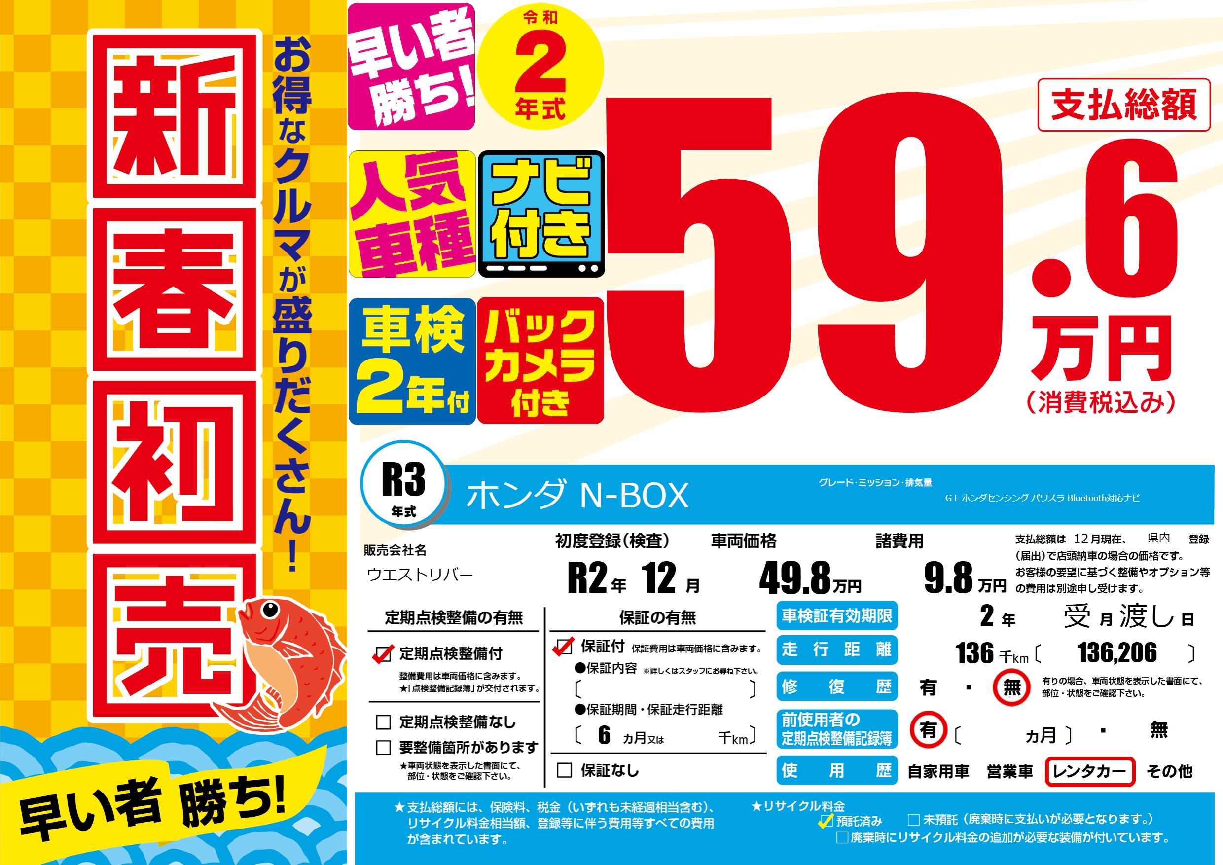 | 走行キロ | 13.6万km | 初年度登録 | R2年12月 |