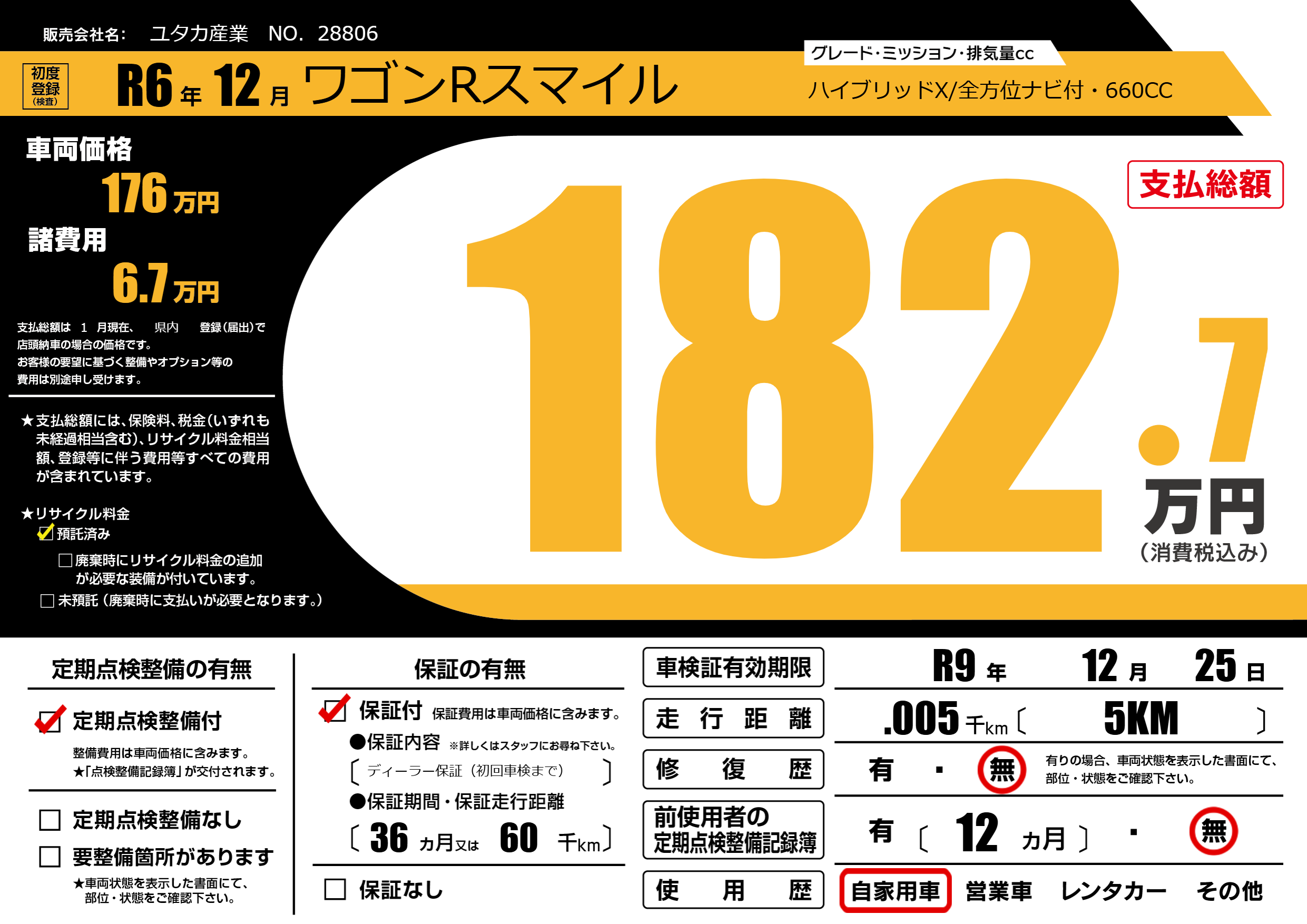 なし | 車検制限 | R9年12月25月 |