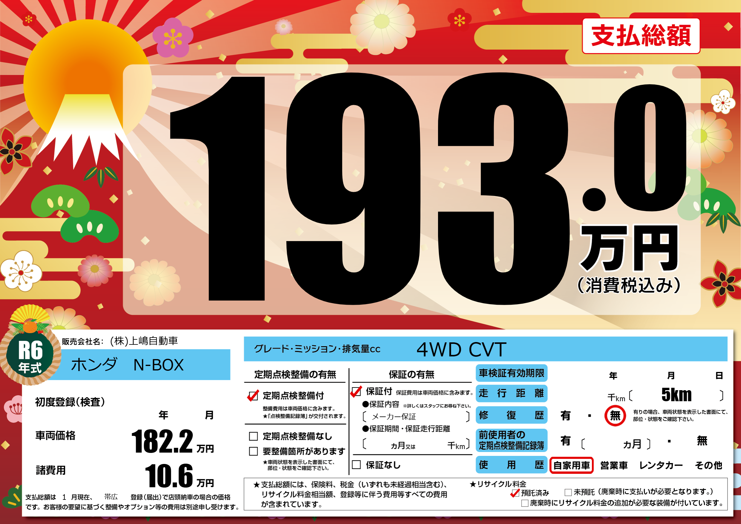 | 車名 | ホンダ N-BOX | グレード ミッション 排気量 |