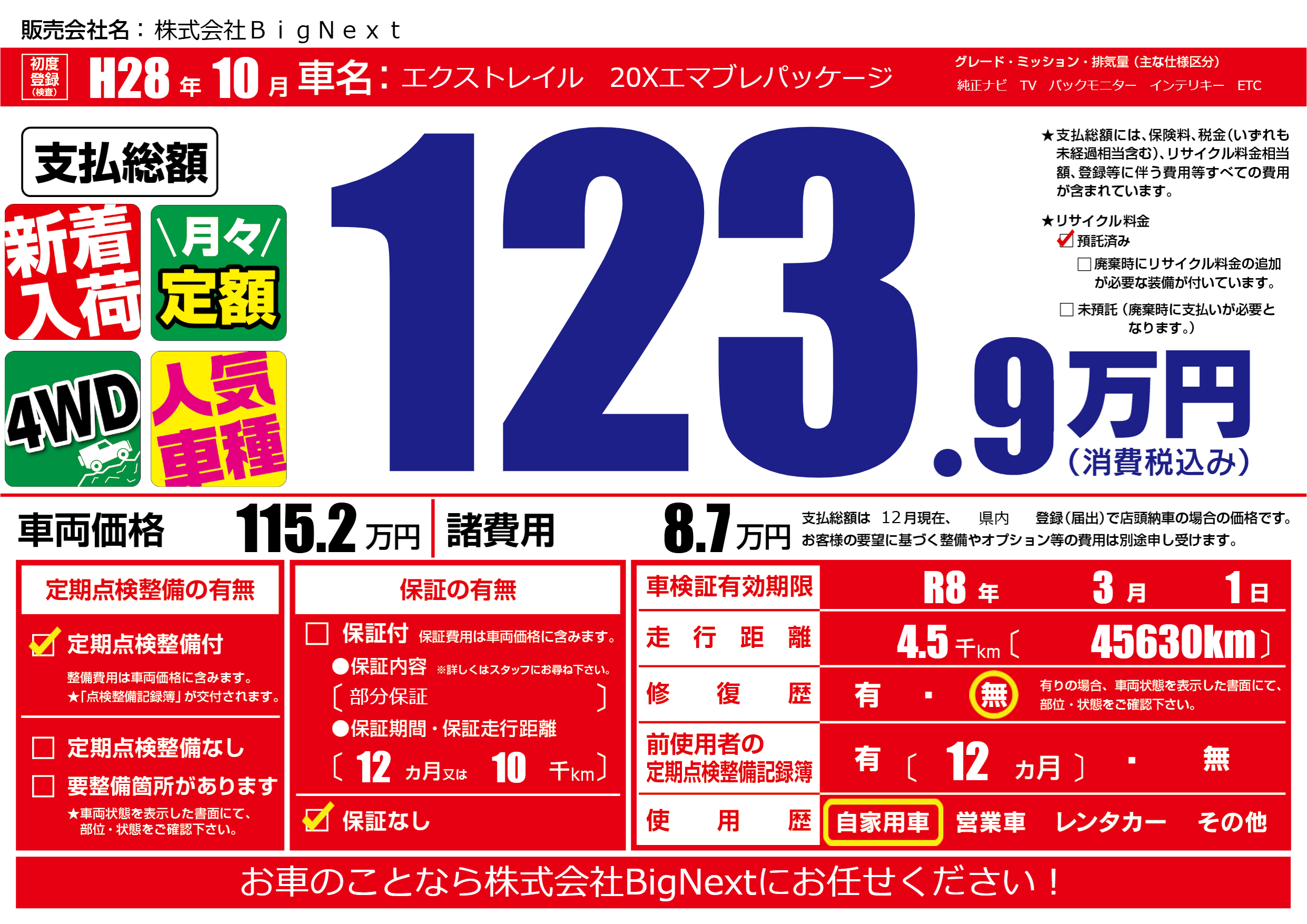 | 初年度登録 | H28年10月 | ||