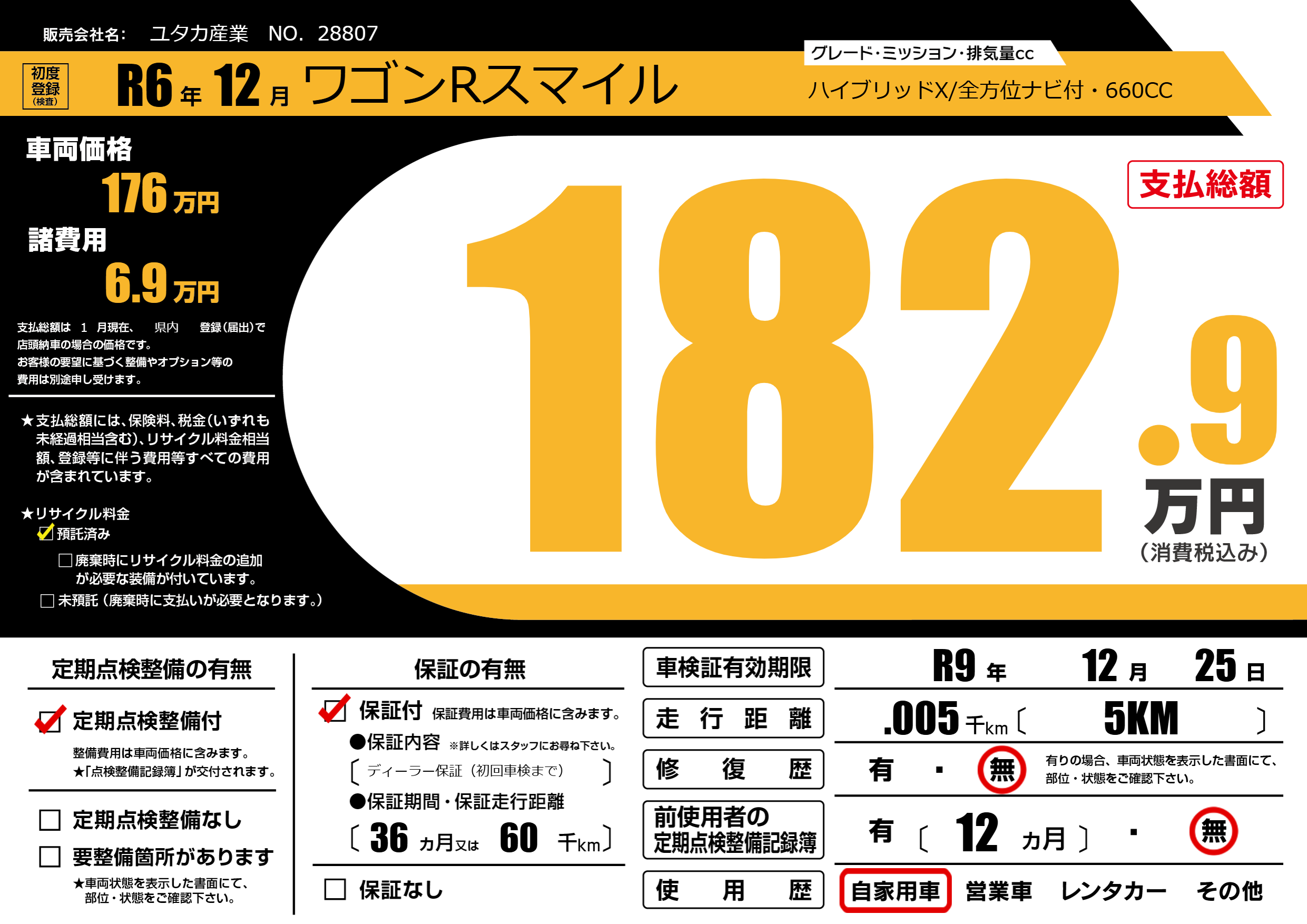 | 車名 | ワゴンRスマイル | グレード ミッション 排気量 |