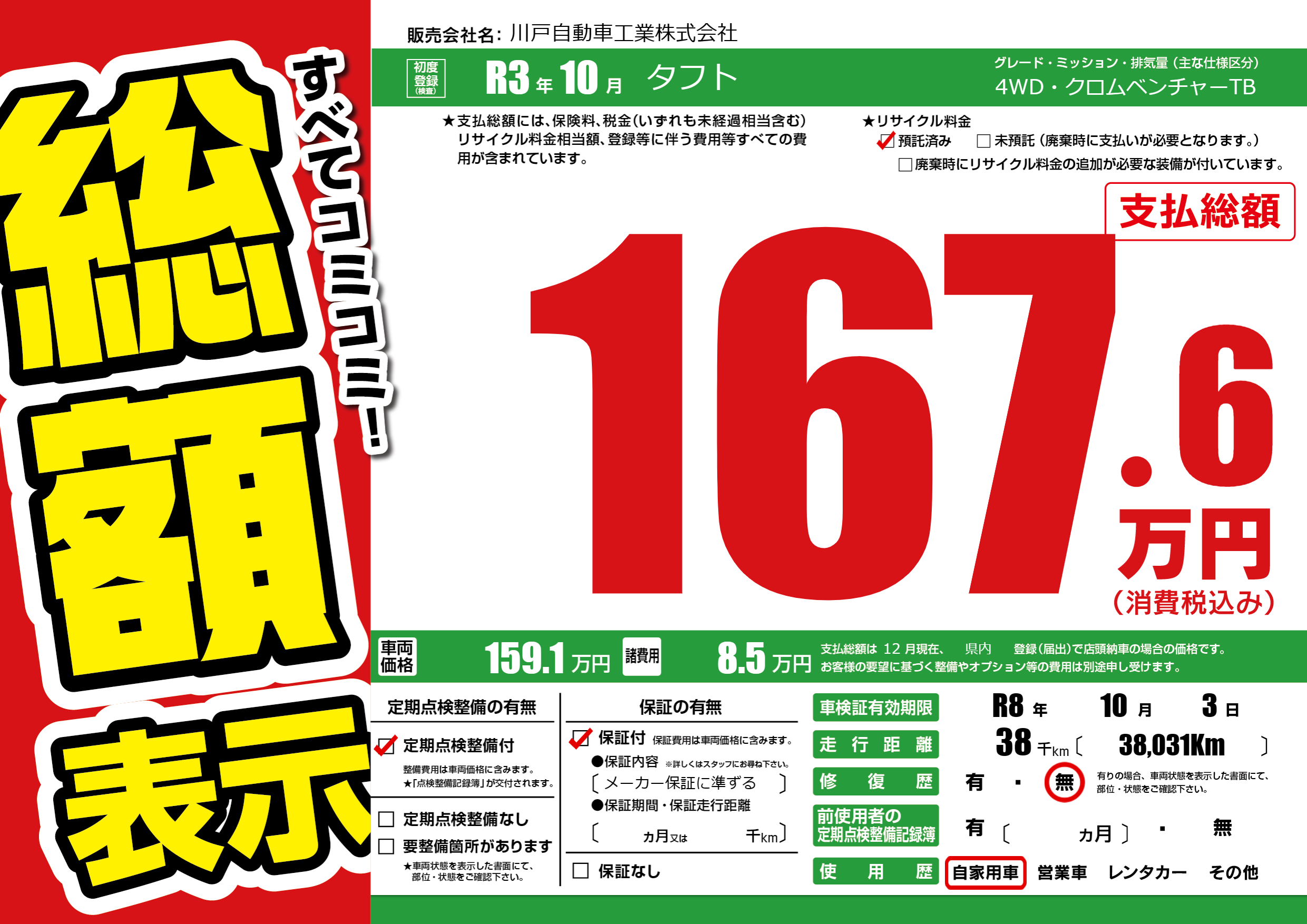 なし | 車検制限 | R8年10月3月 |