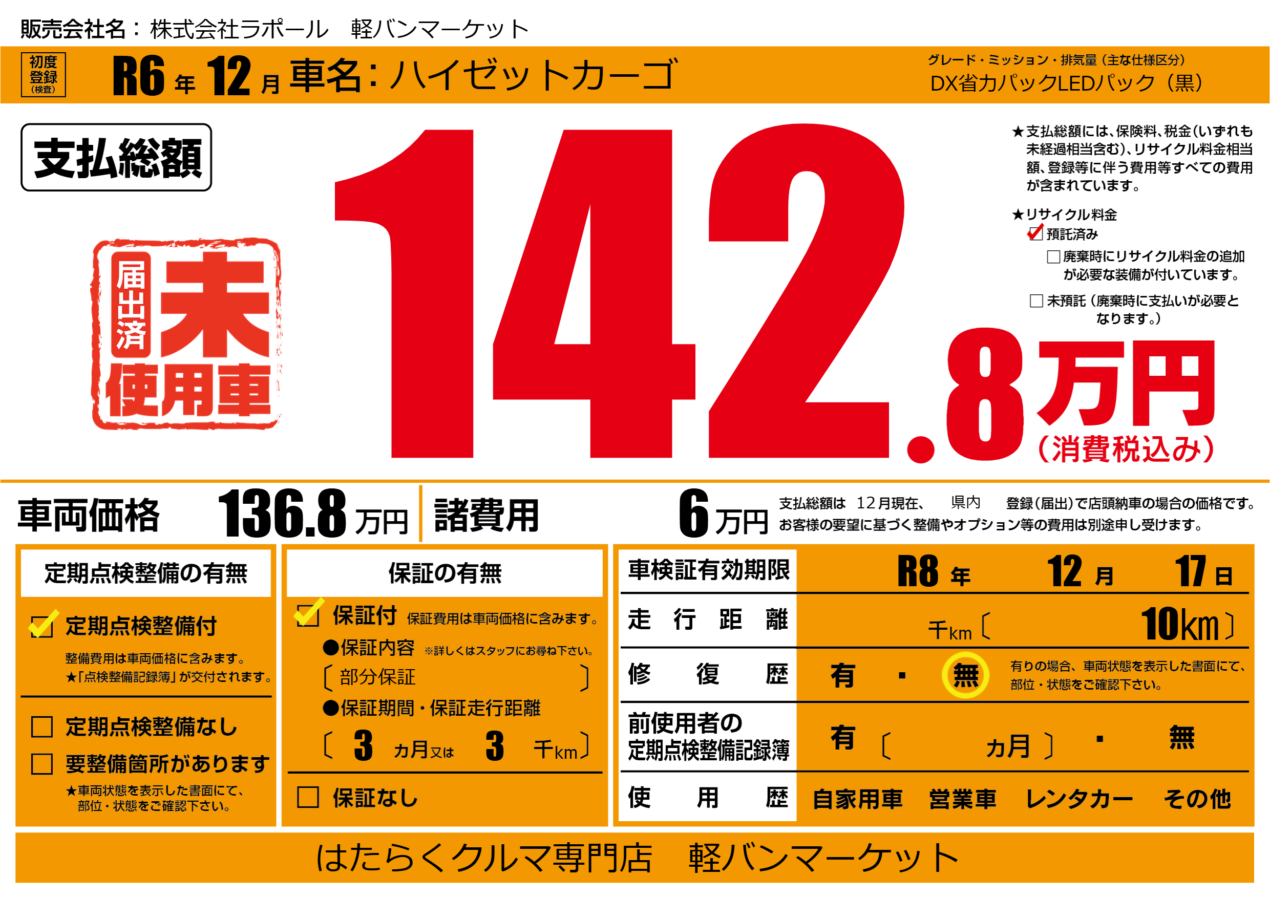 なし | 車検制限 | R8年12月17月 |